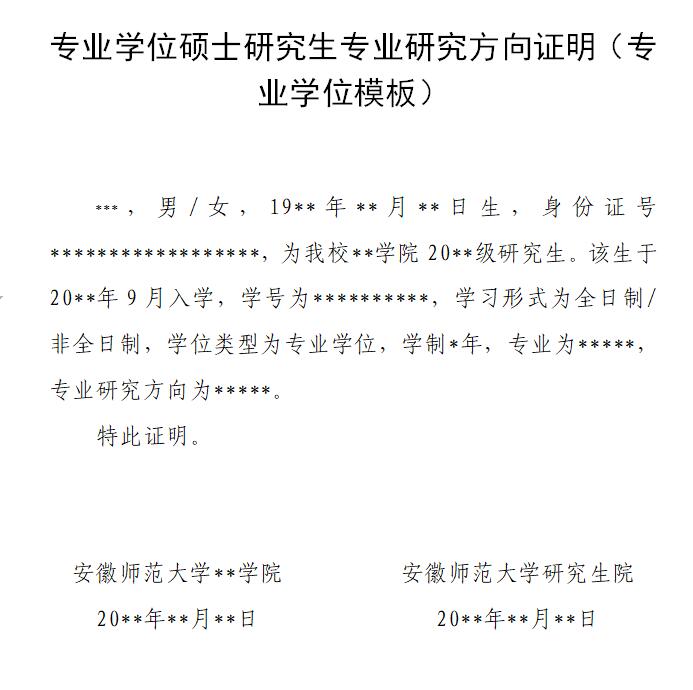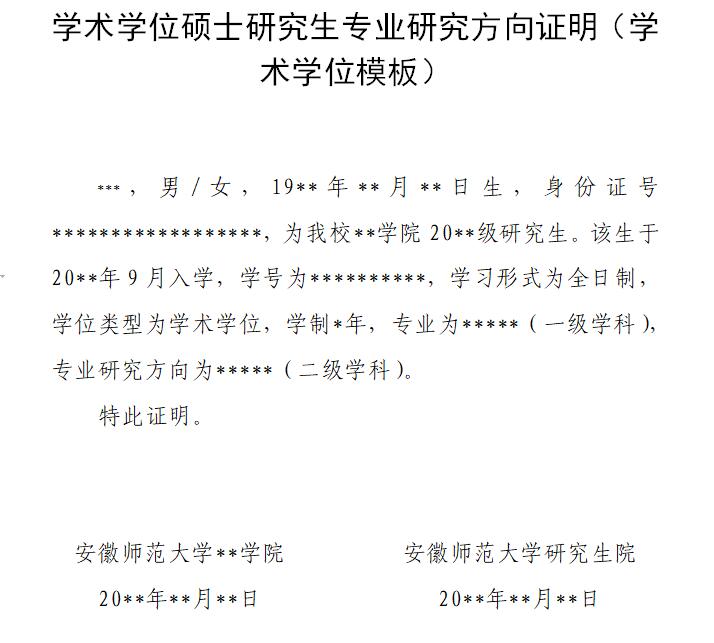 硕士研究生专业研究方向证明(分学术学位和专业学位模板)