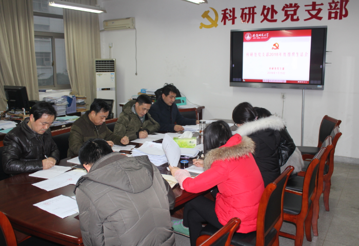 本网讯(科研处党支部)115日下午,科研处党支部在科研处会议室开展2018年度党员组织生活会。会议由支部书记谭书龙主持。