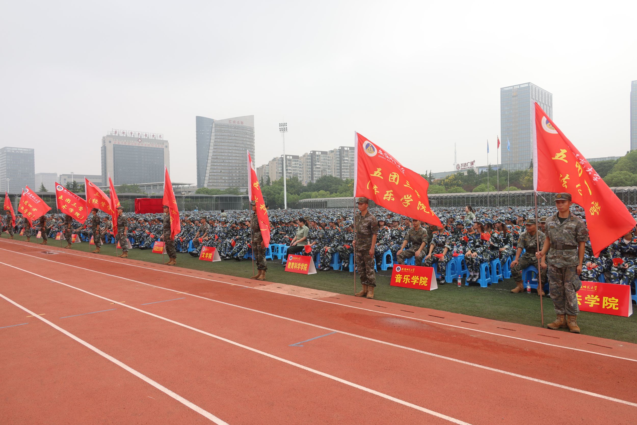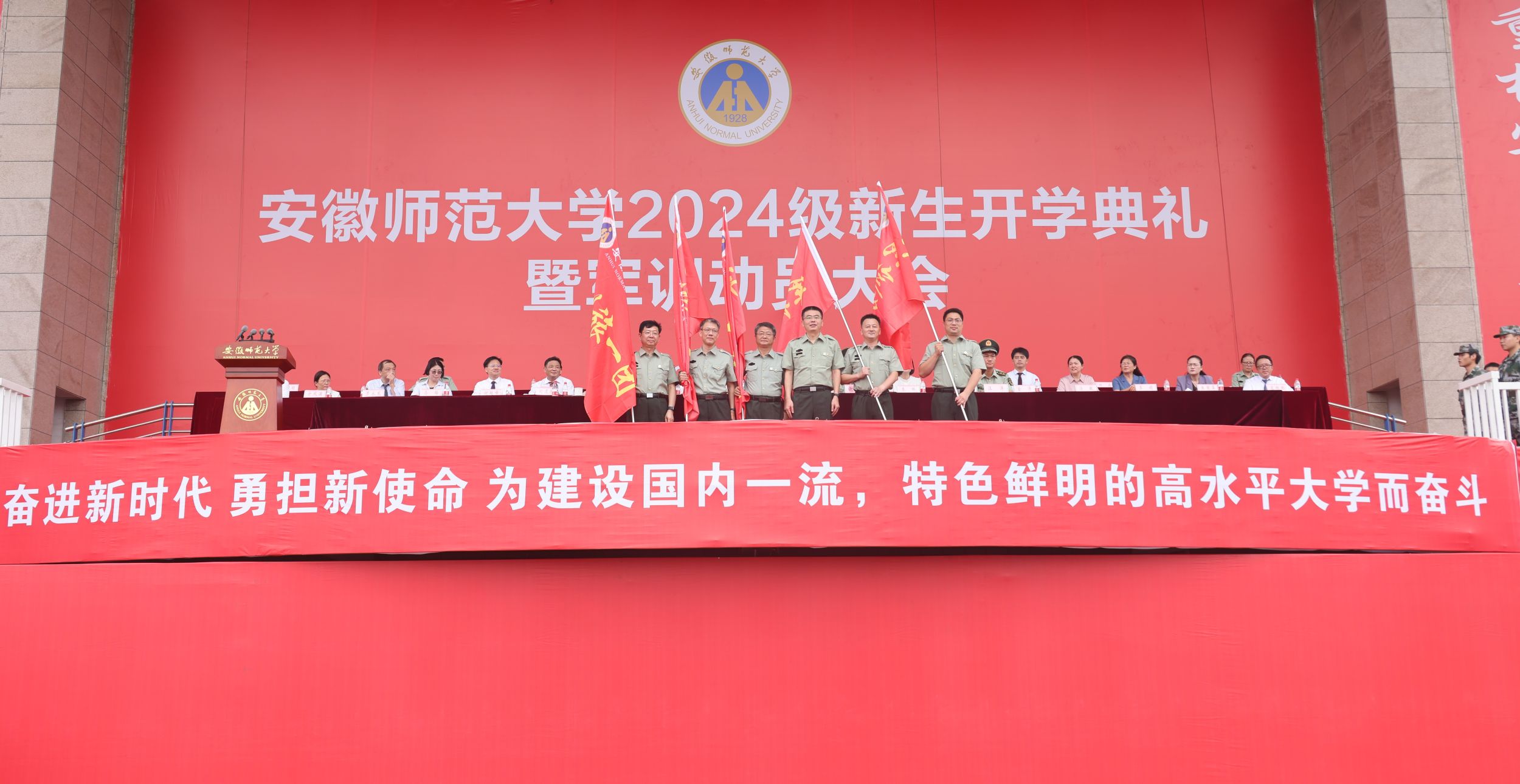 9月14日上午,学校2024级新生军训动员大会在花津校区田径场召开。校党委常委、副校长任永,校党委副书记胡靖,武警芜湖支队支队长谢宏路上校,武警芜湖支队参谋长汪洋中校出席大会。学校军训工作领导组成员,各学院主要负责人和分管学生工作负责人,全体2024级本科新生辅导员,2024级本科新生军训助训教官参加大会。大会由任永主持。