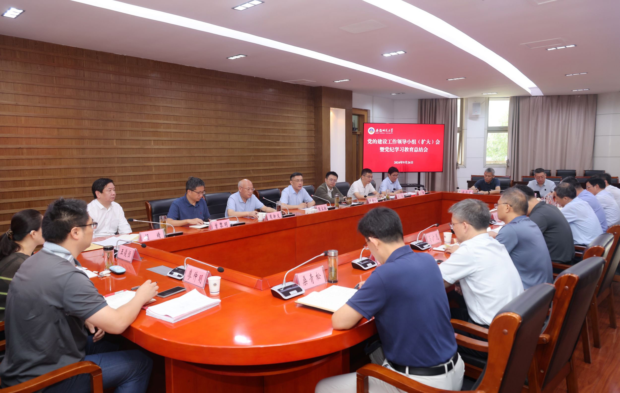 9月26日,学校召开党建工作领导小组(扩大)会暨党纪学习教育总结会议,深入学习贯彻习近平总书记关于党纪学习教育的重要指示精神,认真贯彻落实中央、省委党的建设工作领导小组会议精神和教育部党纪学习教育总结会议精神,总结学校党纪学习教育工作,对巩固深化党纪学习教育成果进行安排,推动全面从严治党不断向纵深发展。校党委书记张立驰主持会议。校领导熊宇杰、周新发、任永、曾黎明、高峰、胡靖出席会议,校党建工作领导小组成员单位负责人,各部门、各单位主要负责人和校党纪学习教育工作专班相关人员参加会议。