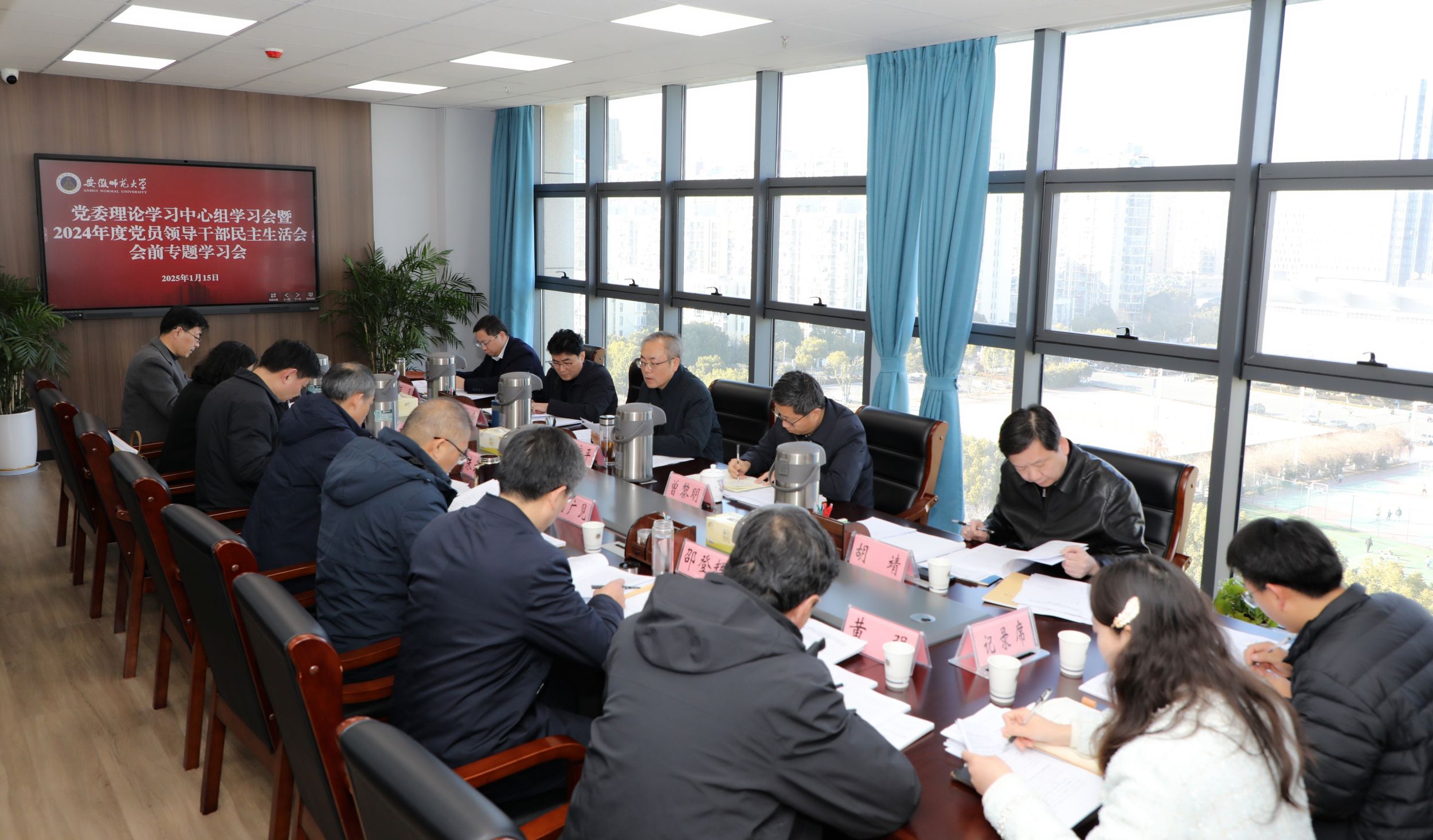 1月15日下午,学校召开党委理论学习中心组学习会暨2024年度党员领导干部民主生活会会前专题学习会,深入学习贯彻习近平新时代中国特色社会主义思想,认真学习领会习近平总书记考察安徽重要讲话精神,跟进学习习近平总书记在中央政治局民主生活会上的重要讲话精神,进一步巩固深化党纪学习教育成果,为开好民主生活会打牢思想基础。校党委书记蒋家平主持会议并讲话。校党委常委、校党委委员参加会议。