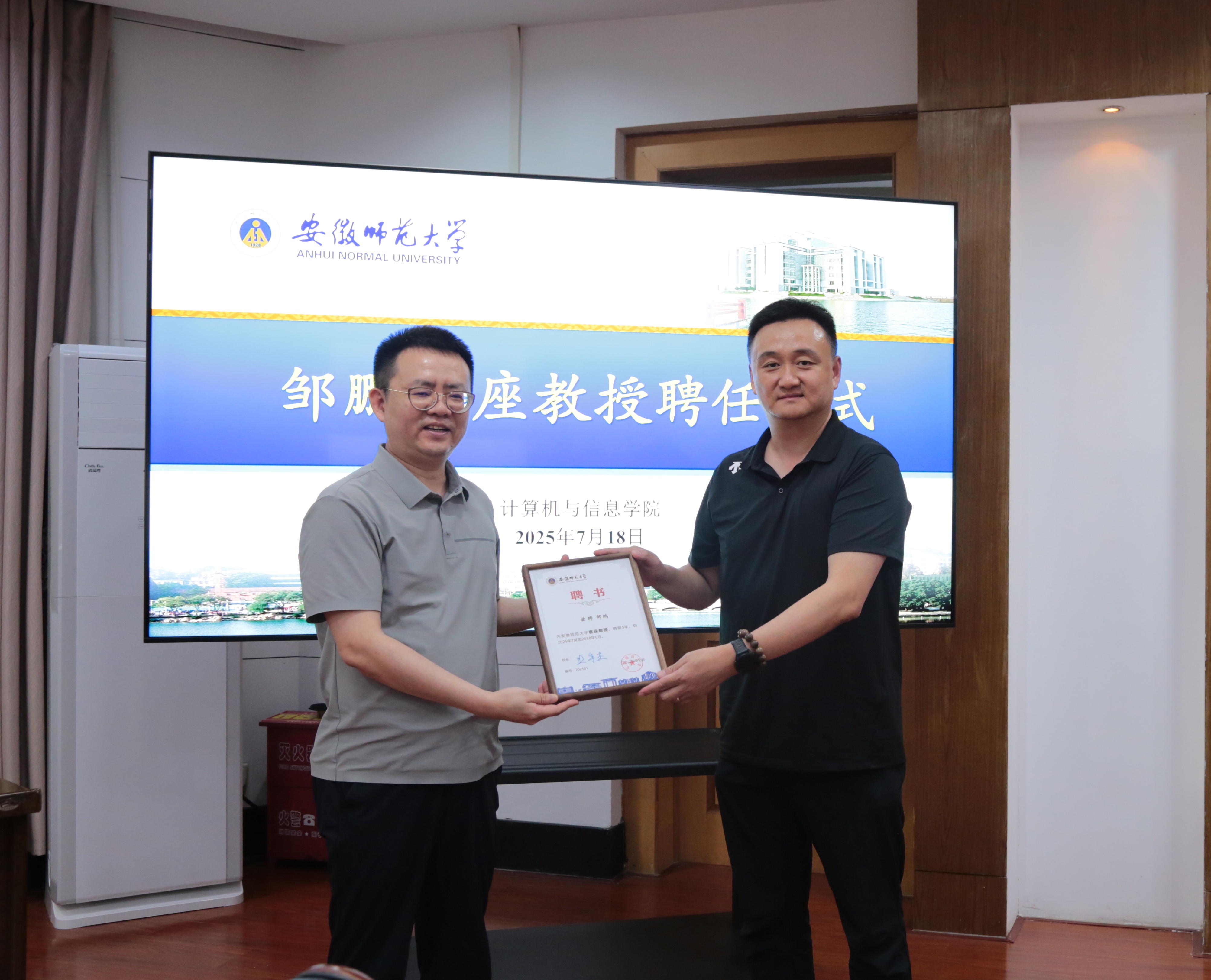 邹鹏表示,感谢学校的信任和鼓励,多年来自己和学校有关学者交流密切、合作扎实,结下了深厚的友谊,此次加入安徽师范大学,倍感责任重大,希望未来能够发挥自身优势,将企业一线实践经验与高校教学科研紧密结合,共同打造优质研究平台,拓展合作项目,推进产学研用融合发展,以切实的举措为学校高质量发展作出贡献。