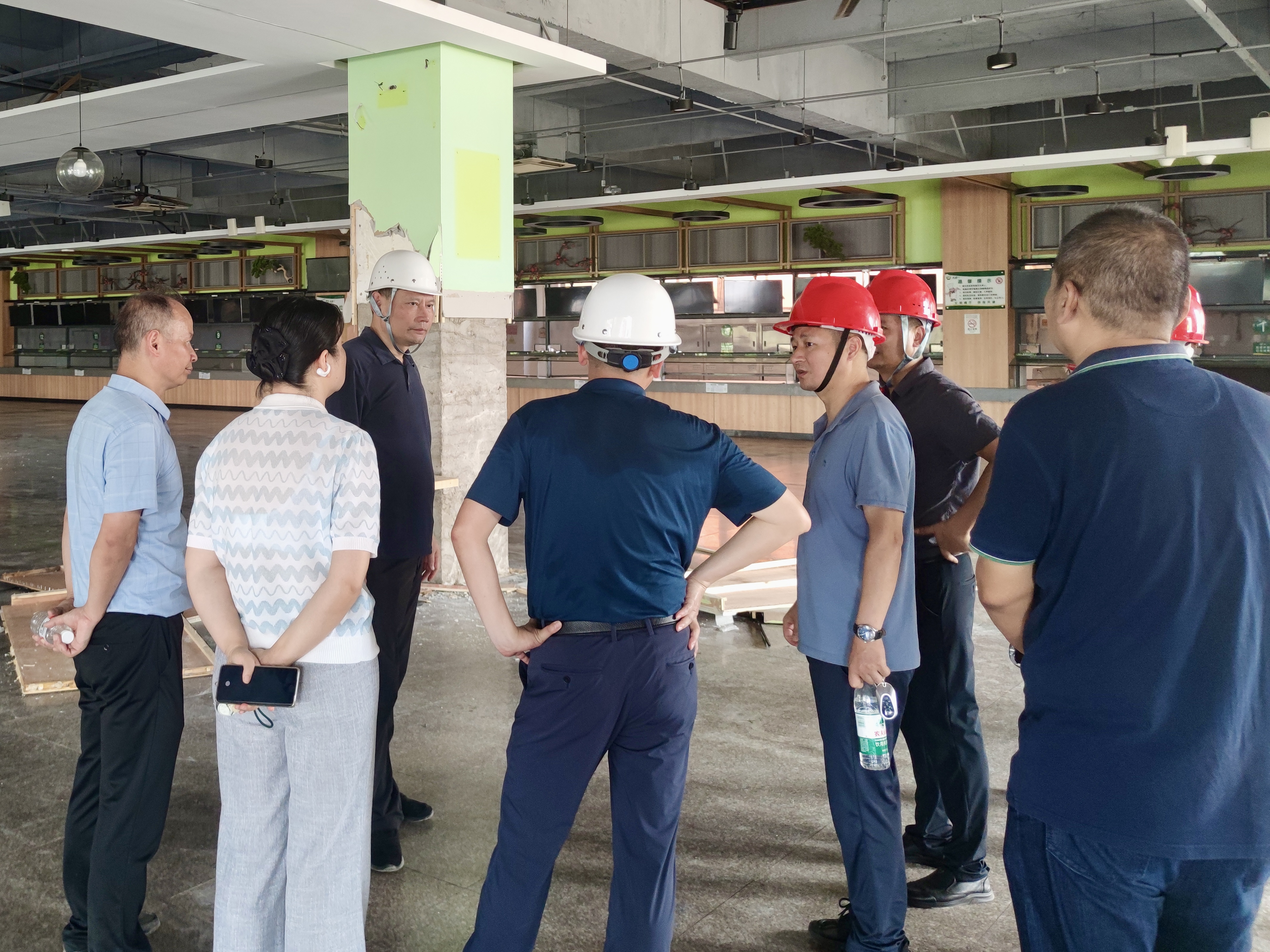 王刚一行先后到赭山校区国际教育楼宿舍改造现场、三食堂音乐学院排练厅改造工地,以及花津校区小高层学生宿舍、42-47号楼整体改造区域,详细察看学生一食堂、二食堂环境升级进度。每到一处,王刚与顶着烈日作业的施工人员、现场管理人员逐一握手,对他们战高温、抢工期的担当表示慰问,并叮嘱施工单位负责人要把防暑降温作为安全生产的重要环节,坚决避免高温中暑事件发生。