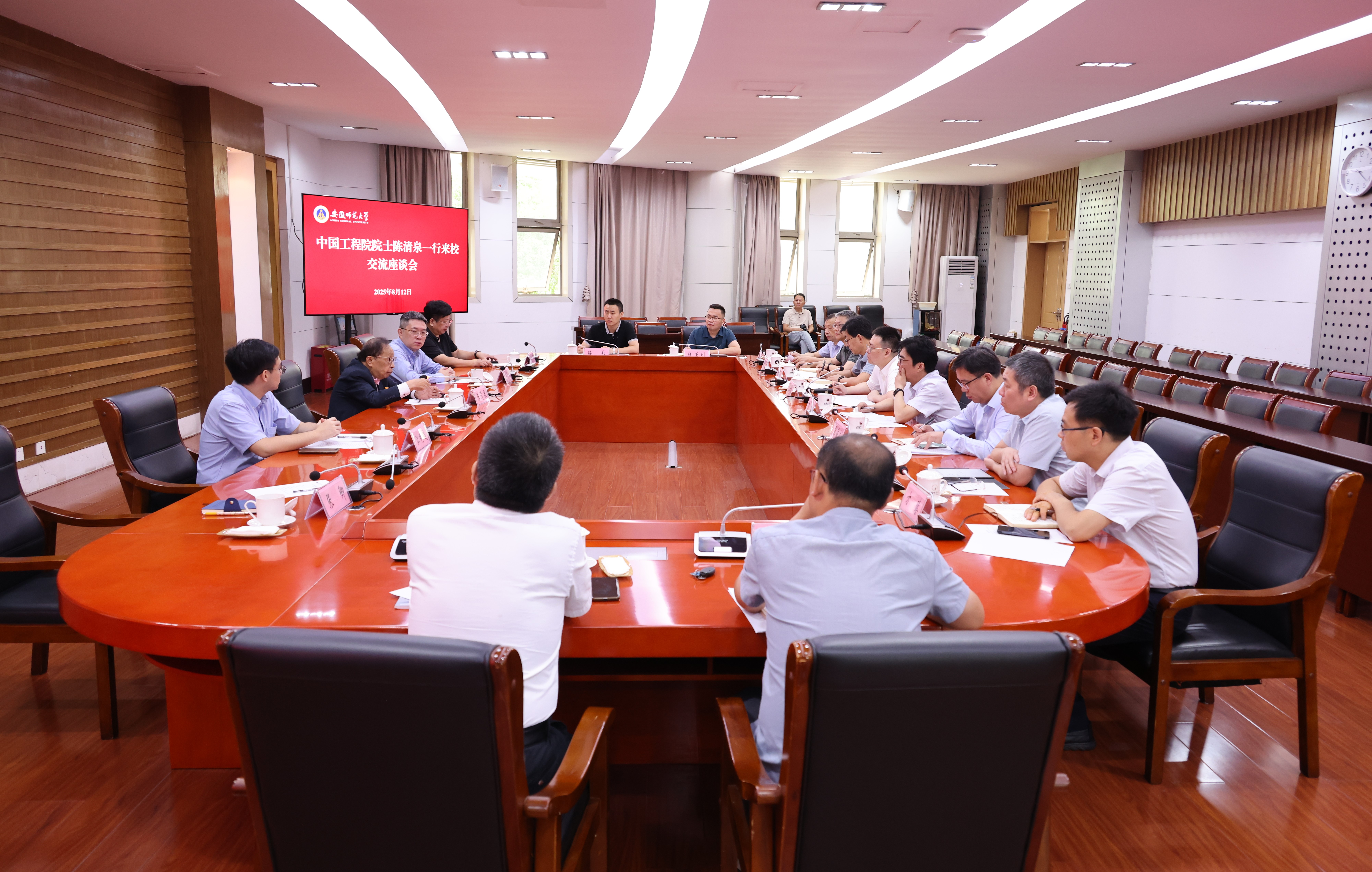 8月12日,中国工程院院士、香港大学荣誉教授暨香港理工大学杰出讲座教授陈清泉,香港理工大学电机及电子工程学系教授、晋江研究院院长、美国光学学会会士余长源,香港理工大学电机及电子工程学系助理教授、电动车研究中心成员、博士生导师江明远一行来校交流座谈。校党委副书记、常务副校长熊宇杰主持座谈会。芜湖市人才发展集团董事长杨少华,芜湖市委人才工作局副局长张卿,校党委常委、副校长高峰,校党委常委、副校长桑青松,学校相关职能部门、学院负责同志参加座谈。