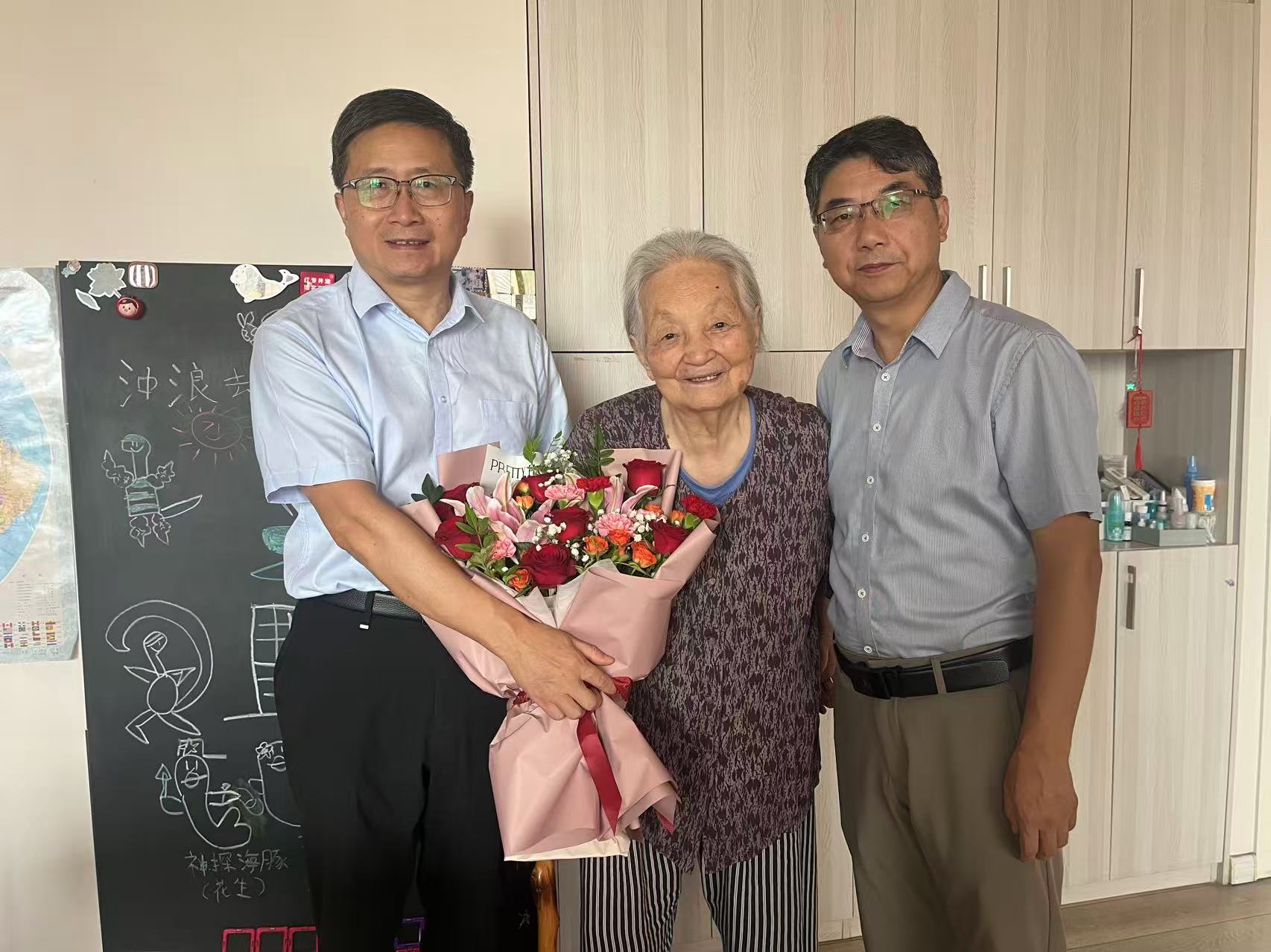 铭记历史,致敬先辈。9月1日,在中国人民抗日战争暨世界反法西斯战争胜利80周年来临之际,校党委副书记曾黎明在离退休工作处处长王继民的陪同下,看望慰问我校抗战离休老同志,送上慰问金,并向他们致以诚挚的祝福和崇高的敬意。此前,学校还向他们颁发了“中国人民抗日战争胜利80周年”纪念章。