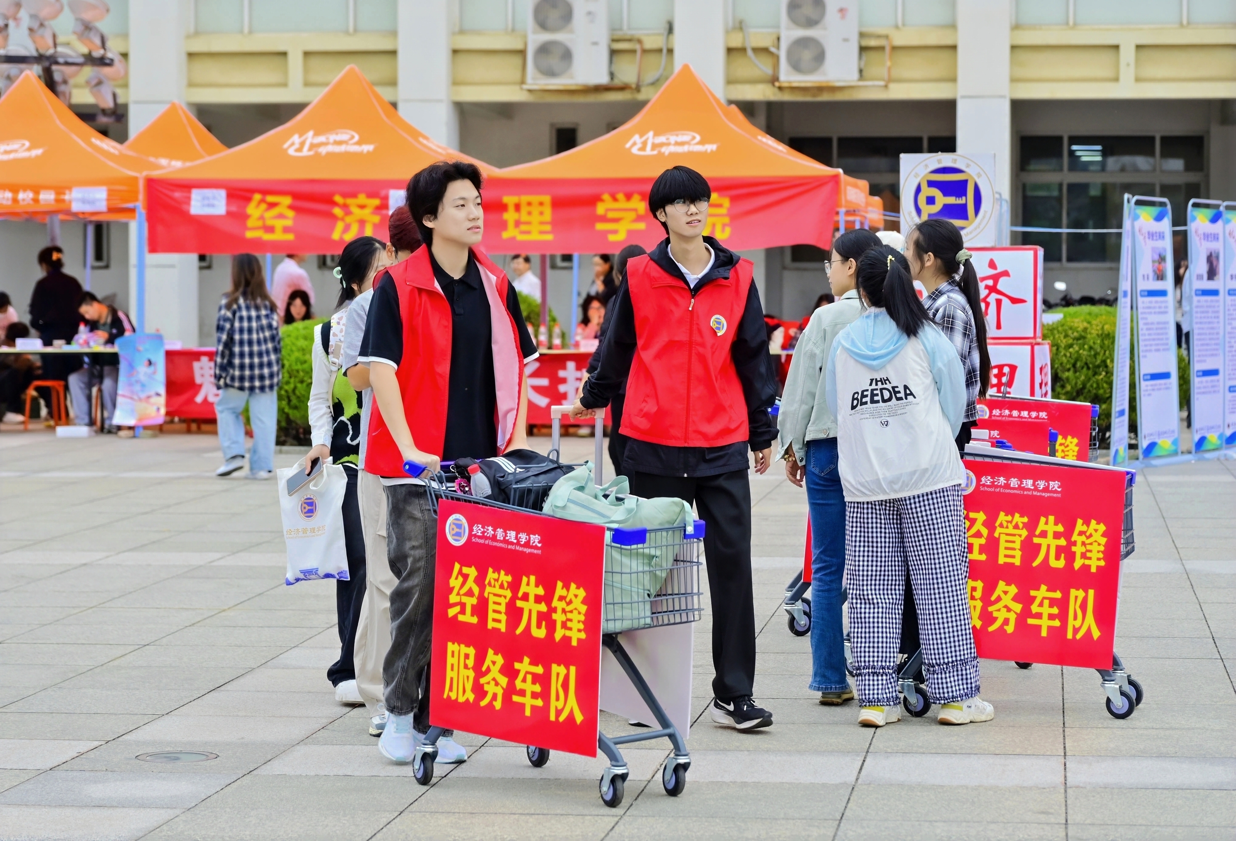 校领导蒋家平、熊宇杰、曾黎明、高峰、胡靖、茆磊、桑青松、王刚一行先后来到迎新报到现场、学生宿舍、食堂,看望前来报到的新生和家长,并慰问服务在迎新工作一线的教职员工和学生志愿者。学校始终秉持“以学生为本”的理念,为保障迎新工作高效有序,在火车站及长途汽车站均设接站点,提供直达各校区的专车服务。各校区校门入口处均设有行李搬运与引导点,沿路设置路口咨询服务站,各学院、物业“先锋”志愿服务车队随时待命,协助转运大件行李,志愿者“一对一”引导新生抵达相应宿舍,确保新生高效、顺畅完成报到全流程。