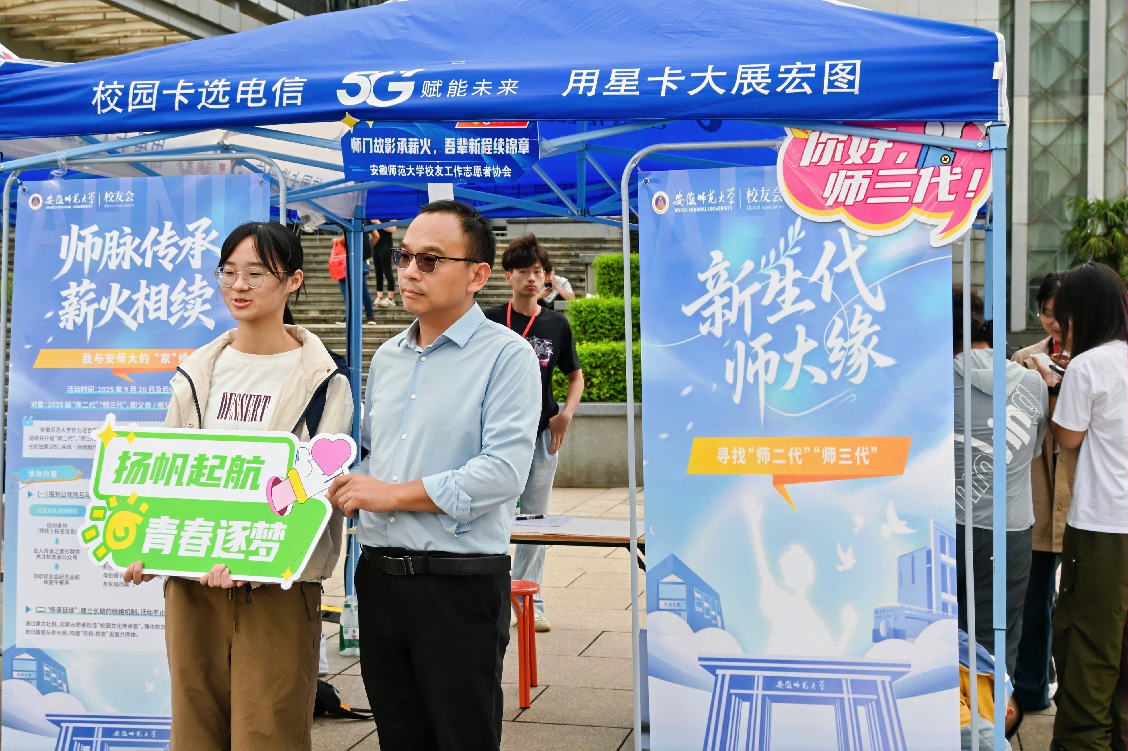 薪火相传,新程启航。今年迎新中,还迎来一批特别的“老熟人”。跨越29年,音乐学院2025级作曲与作曲技术理论专业的许我扬和母亲,拥有了共同来自安徽师范大学的录取通知书。“两代人的青春,都将在这一片热土上重叠延续,”许我扬的母亲感慨道:“我曾在师大度过最幸福美好的时光,我也希望孩子能够好好珍惜这段求学时光,努力实现自己的理想。”两代师大人,一生师大情。新闻与传播学院2025级新闻学专业赵逸雯同样也与父母成为了“校友”。谈及心中期待,她说:“希望我能在师大书写自己人生的新剧本。”赵逸雯父亲也送上了最诚挚的祝福:“希望你在大学中明确目标,知道自己想要什么,并持续努力。没有付出哪有回报,不经历风雨怎见彩虹,继续加油,大胆地往前走吧!父母永远是你坚强的后盾。”“师二代”“师三代”们的出现,不仅是师大精神的赓续与传承,更是一场深情的接力、一种温暖的奔赴。