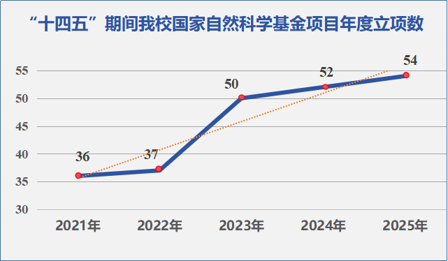 近年来,我校全面推进“学科振兴行动计划”,以国家自然科学基金为重要抓手,开展有组织科研,积极拓宽国家自然科学基金各类项目申报渠道,圆满完成“十四五”目标任务,并实现了连续五年立项总数逐年提升,标志着我校基础研究能力持续增强、科研创新活力显著提升。
