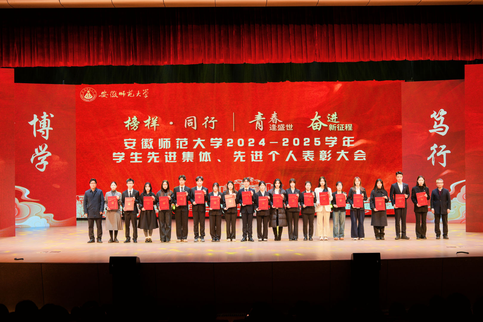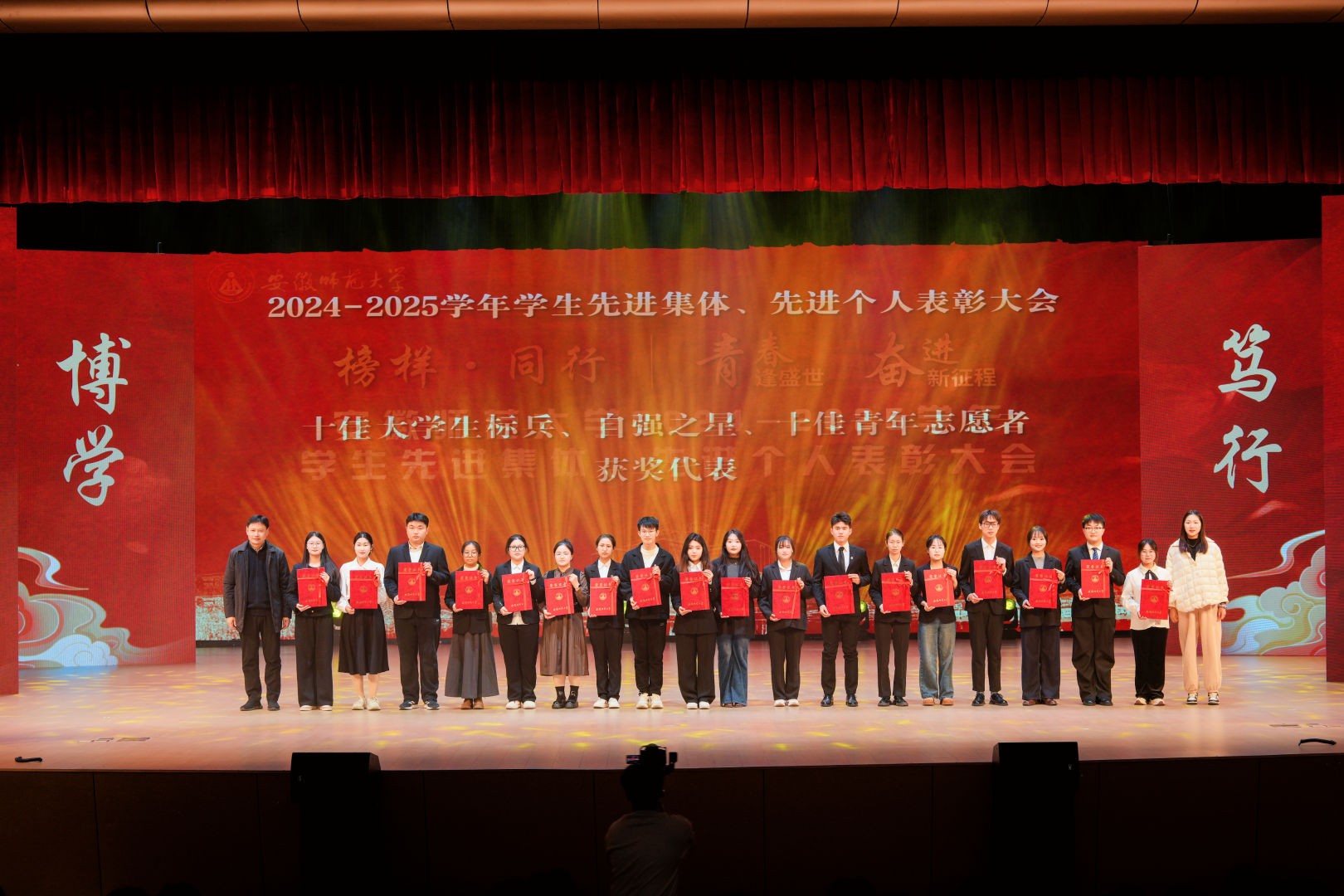 学生先进集体、先进个人表彰大会作为我校育人工作的重要载体,将先进表彰、事迹分享、朋辈引领分篇章融入仪式,用身边榜样故事讲好“大思政课”,在生动的故事情节中“滴灌”思想理论,激励广大学生坚定信念、奋发有为,投身强国建设,共同谱写属于新时代的青春篇章。