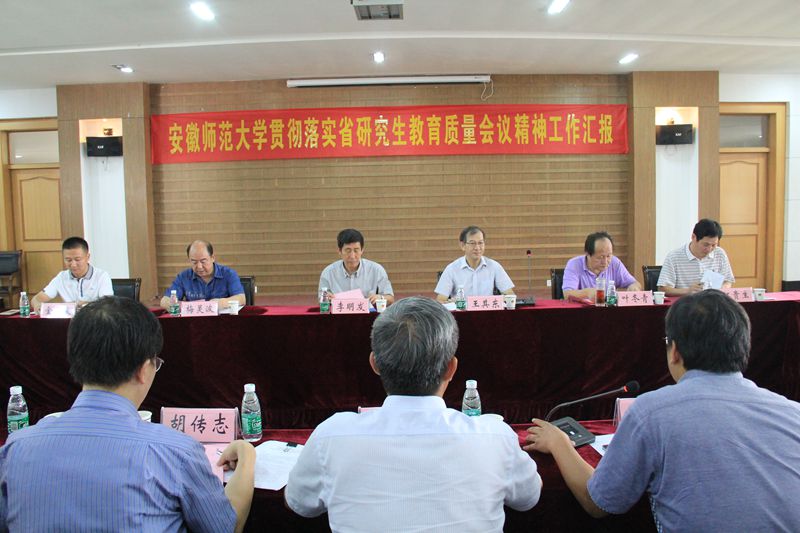 本网讯(研究生院 严俊)8月18日,由安徽理工大学副校长王其东任组长的省督查组一行6人,来我校督查指导贯彻落实全省研究生教育质量工作会议精神情况。我校副校长朱家存,研究生院负责同志、各学院分管研究生工作副院长、专业学位点负责人、校内外导师代表及研究生院全体人员参加汇报会和座谈会,汇报会由研究生院副院长商永嘉主持。
