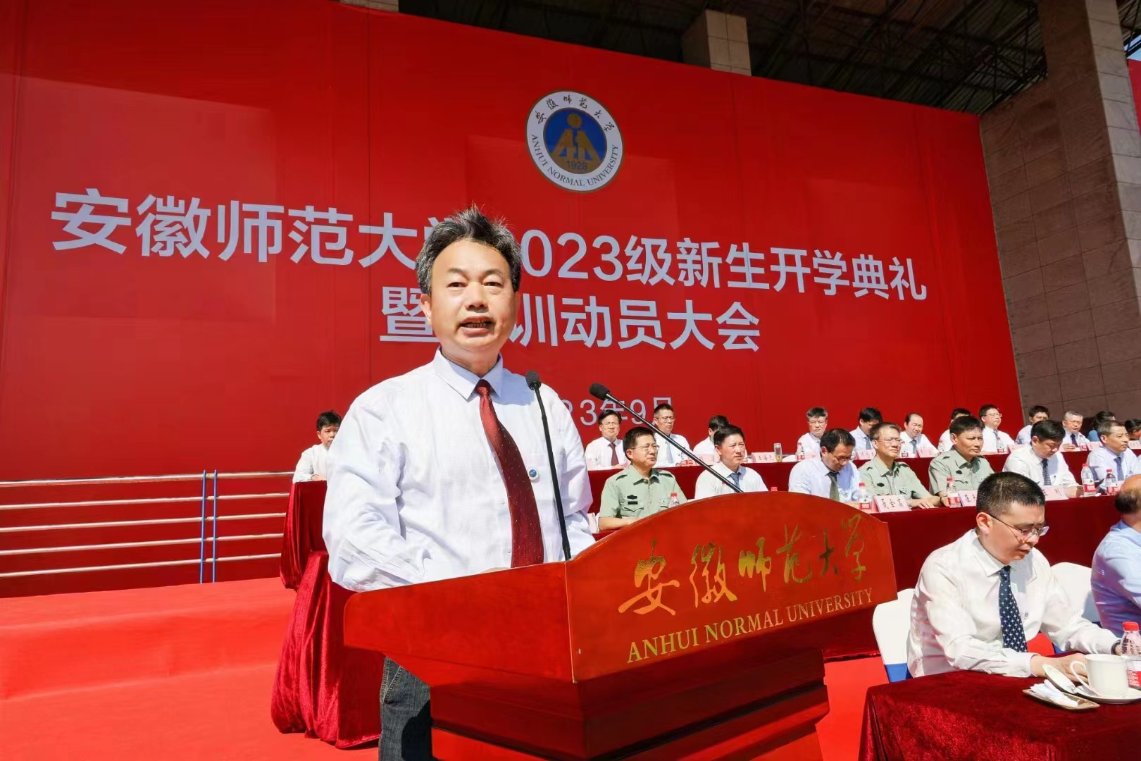 “作为游子归家,我非常开心、自豪。”檀传宝作为师大校友,对母校感情颇深,曾多次回母校讲学的他十分激动地将此次开学典礼的邀请视作游子回家最荣耀的一次。尽管正值开学之际,身为北京师范大学教授兼中国音乐学院特聘教授的他十分繁忙,“但母校的召唤不容推辞,我还是克服困难,站在了这里,就为了表达一个安徽师范大学政教79级学子对于母校的真诚感恩、对最新一代安师大人的由衷祝福!”面对初入学的新生们,回首在师大的青春岁月,檀传宝感慨颇深。