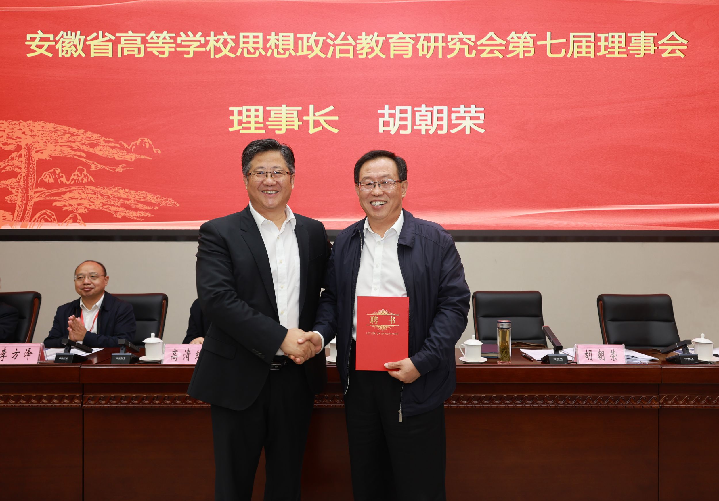 新当选的研究会第七届理事会理事长、安徽师范大学党委书记胡朝荣作了就职发言。他代表新一届理事会全体成员向省委教育工委、省教育厅的指导支持以及历届理事会同仁的辛勤付出表示衷心感谢和崇高敬意,并对今后的工作进行了部署。他表示,今后研究会将在省委教育工委、省教育厅的指导下,坚持政治立会,旗帜鲜明讲政治,在强化政治引领上争当表率,大力培养造就担当强国建设、民族复兴大任的时代新人。坚持问题导向,及时总结研究会过去好的经验,分析研判目前的形势,严格执行研究会章程,牢记职责使命,主动担当作为,坚持以“小切口”做出“大文章”。加强交流交往,积极向省委教育工委和上级思政研究会汇报研讨工作,加强与兄弟省市研究会的联系交流,切实提升研究会的活力,充分发挥研究会的功能作用。加强自身建设,提升履职能力,扎实做好研究会各项工作,全面提升全省高校思想政治教育工作的科学化水平,努力为我省打造“三地一区”和建设“七个强省”提供更加有力的人才支撑、智力支撑。