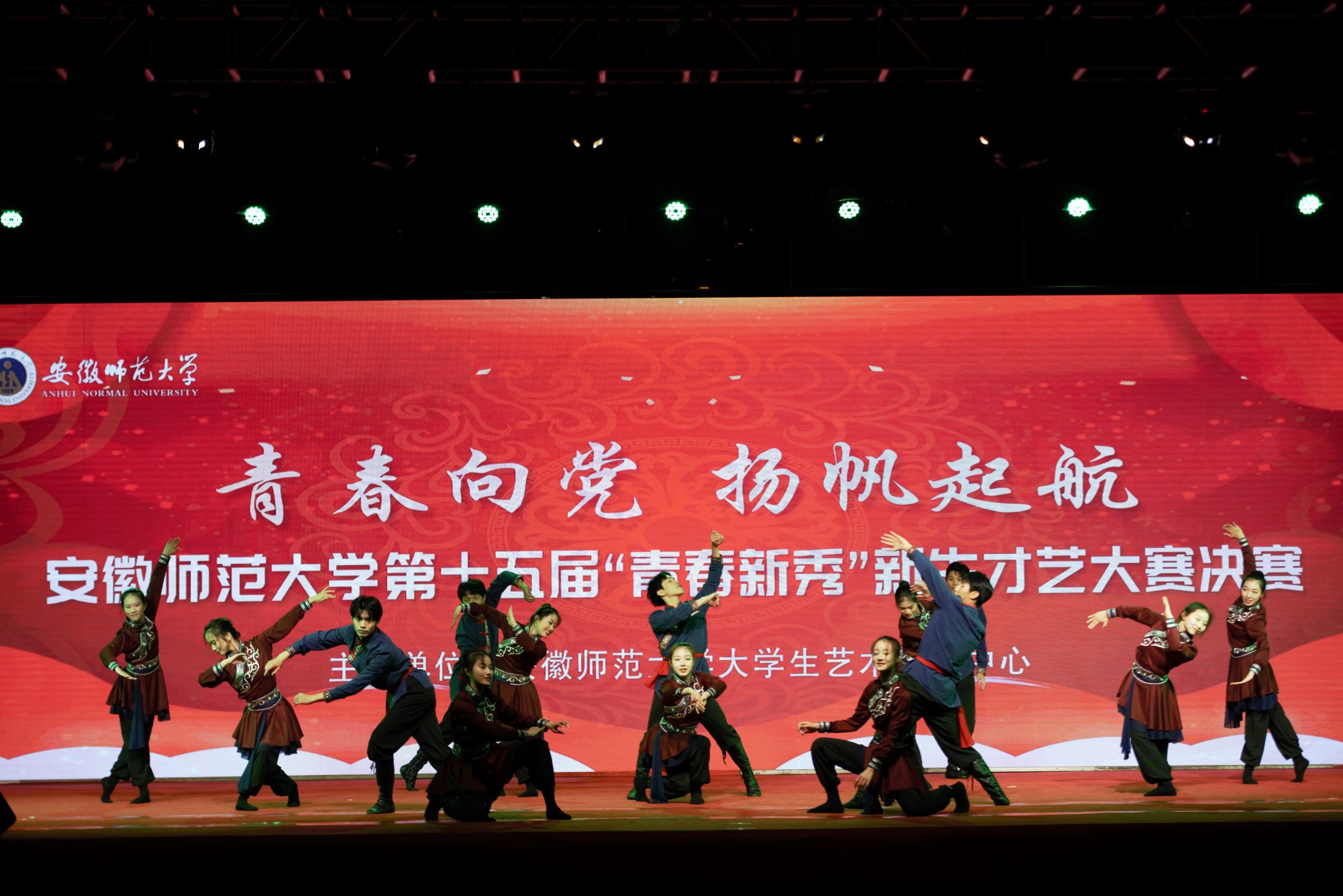 此次新生才艺大赛历时2个月,三个校区联动,校院班三级累计2500余名学生参与其中,大赛组委会共收到28个选送节目。今年是安徽师范大学举办新生才艺大赛的第十五年,全校师生以多彩的演出献礼祖国、讴歌时代,每个篇章都将理论宣讲与艺术相融合,集思想性、艺术性、观赏性于一体,体现了师大学子红心向党、青春昂扬的蓬勃朝气和全体师生与祖国共奋进的使命担当。