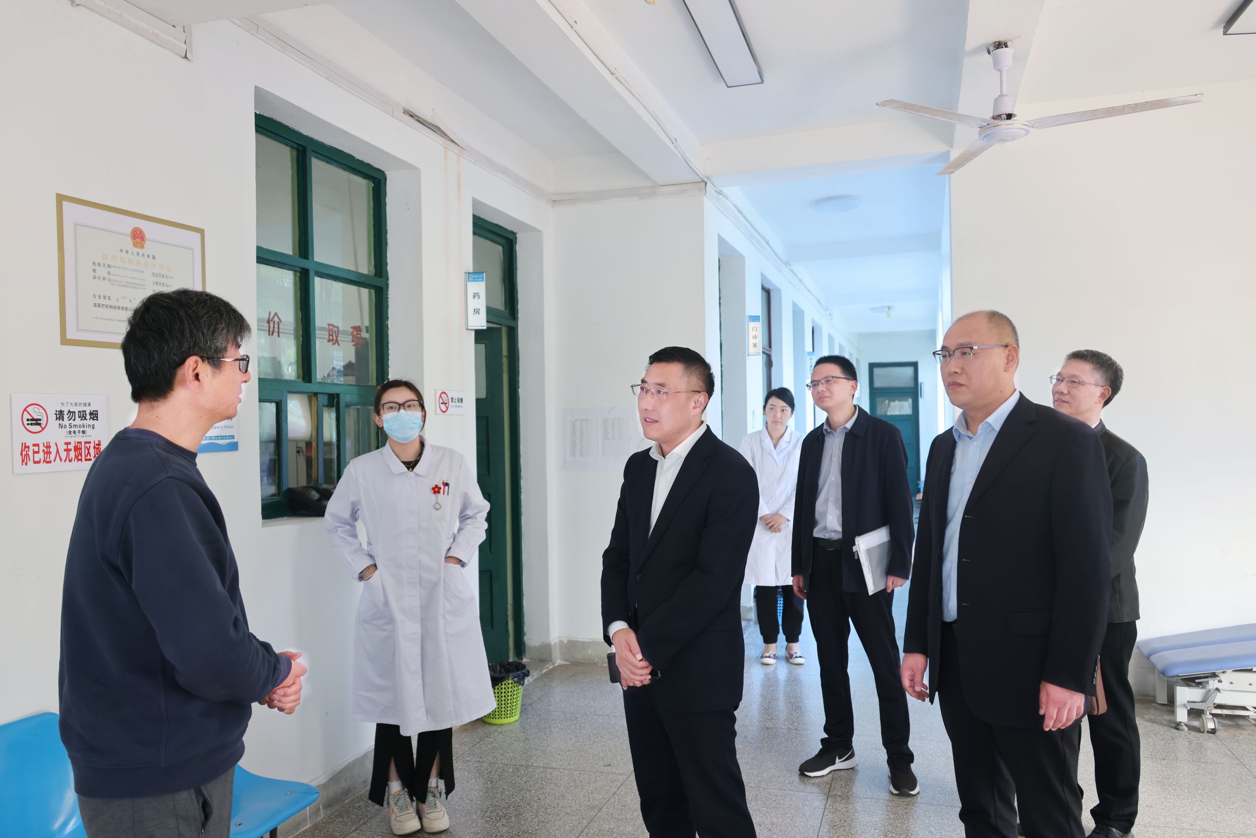 在天门山校区,张立驰一行实地走访调研了学校校医院、“一站式”学生社区、学生宿舍、操场、大礼堂、北教学楼、图书馆、校园家属区等处,详细了解校区基本情况。