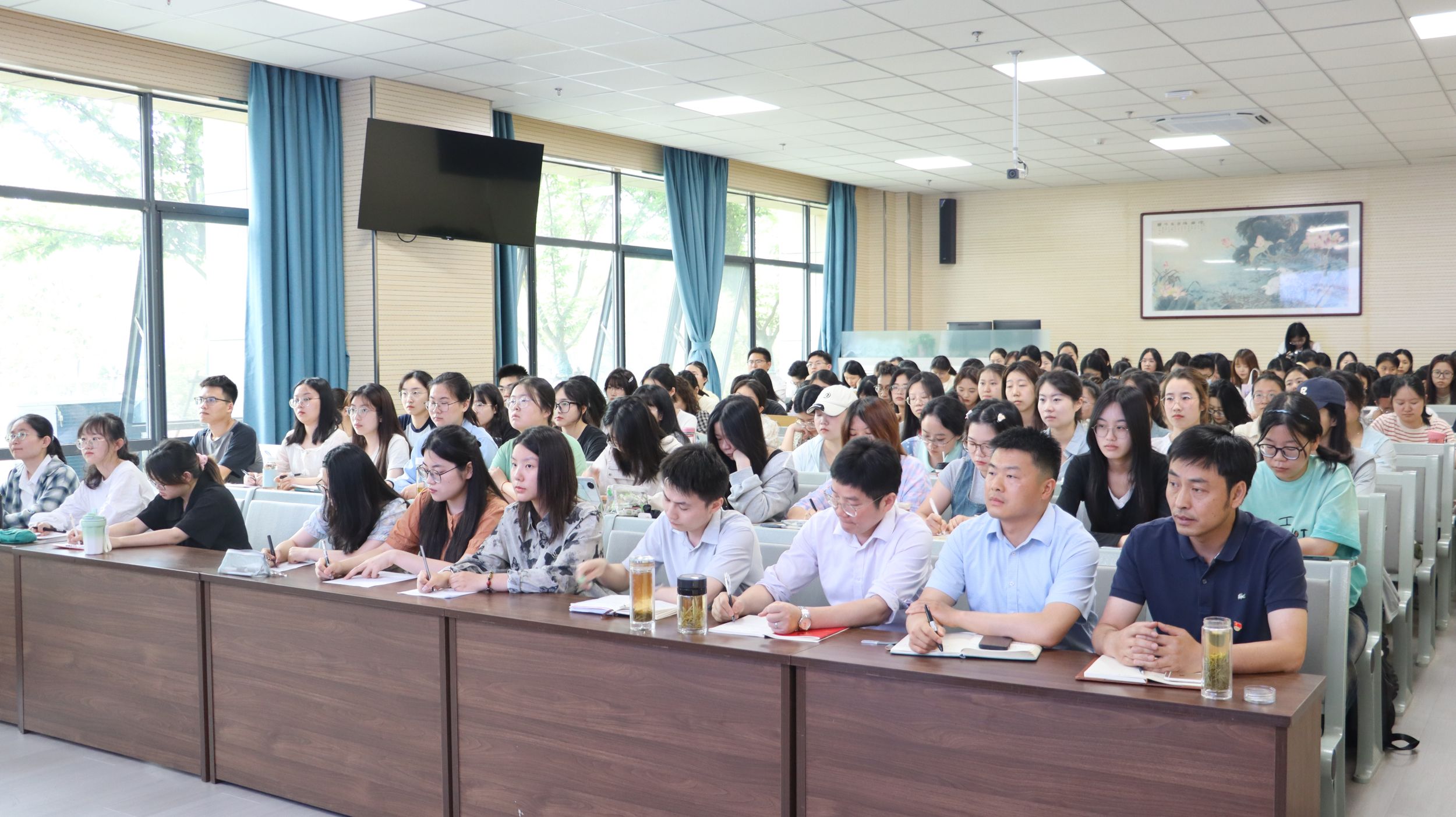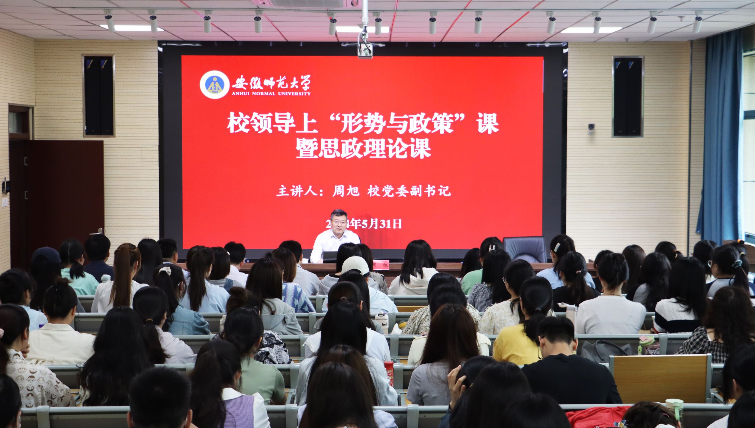 5月31日下午,校党委副书记周旭为文学院师生讲授2024年春季学期“形势与政策”课暨思政理论课。文学院领导班子成员、辅导员代表、学生党员代表和第67期入党积极分子培训班学员现场聆听。专题课由文学院党委副书记(主持党委工作)戴和圣主持。