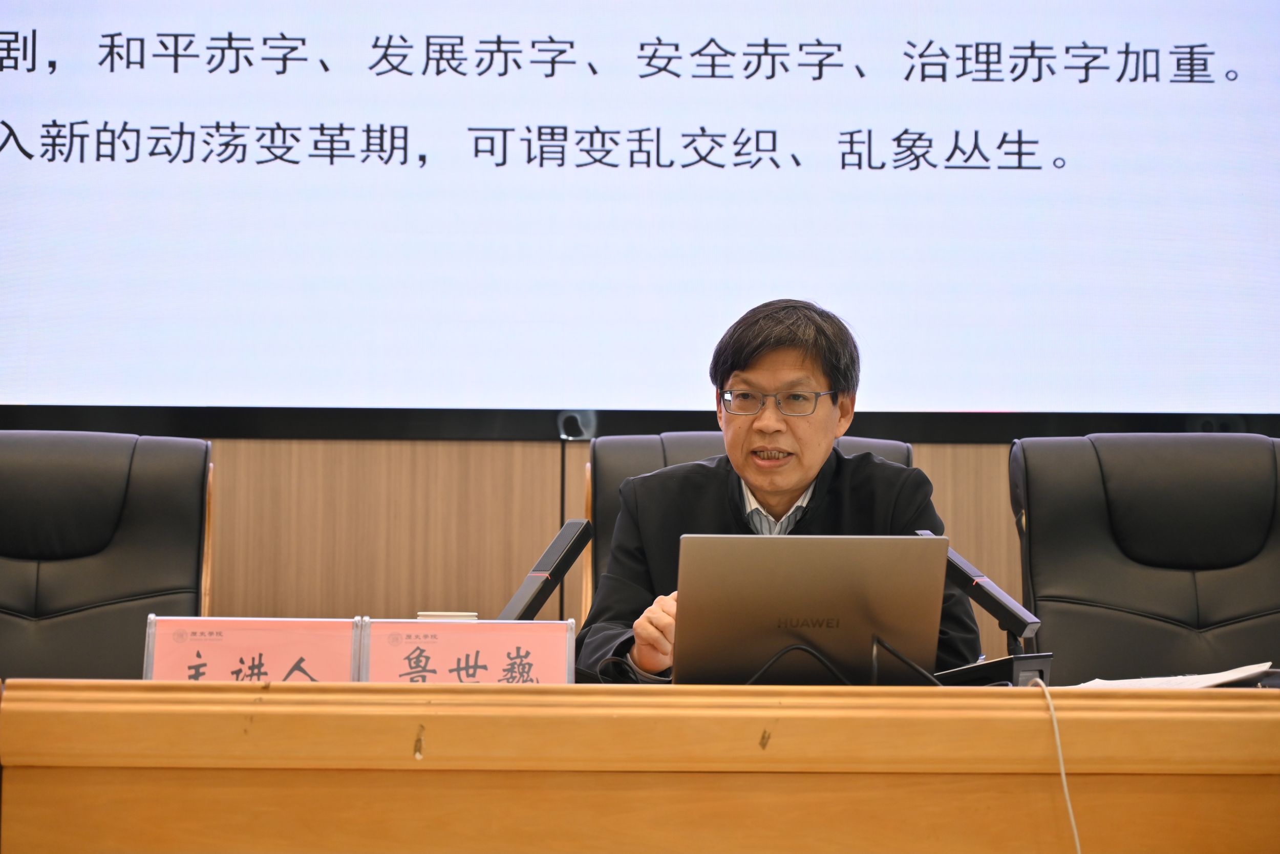 2024年11月21日下午,武汉大学经济学博士、外交部政策规划司鲁世巍总领事在花津校区文典楼B108报告厅为历史学院师生作了题为《大变局下的国际形势与中国外交》的学术报告。报告由历史学院院长刘道胜教授主持,世界史专业相关教师及学院百余名本科生和研究生到场聆听。