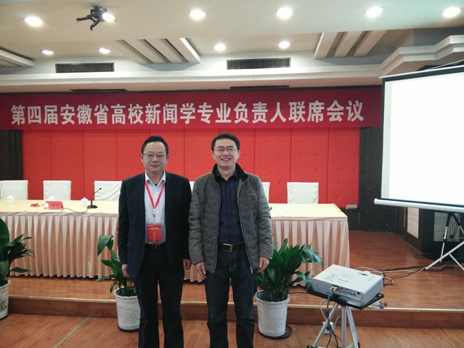 本网讯(新闻与传播学院) 11月19日,安徽省第四届高校新闻学专业负责人联席会议在安庆师范大学举行,中国人民大学、复旦大学、南京大学等高校专家,安徽省16个高校40多名代表参加了会议,新传学院执行院长杨柏岭教授与新闻学专业负责人肖叶飞副教授参加了会议。