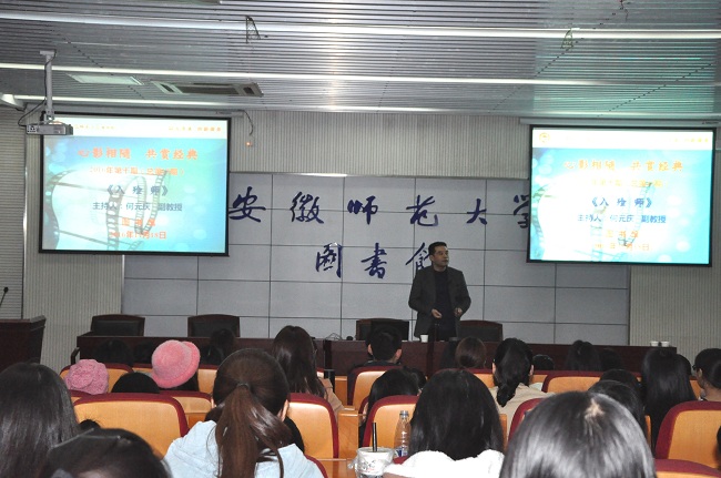本网讯(图书馆)11月18日晚,图书馆“心影相随 共赏经典”2016年第十期(总第15期)悦读活动在敬文图书馆一楼视听阅览室举行。本期活动由何元庆副教授主持,观赏感悟人生系列影片——《入殓师》。
