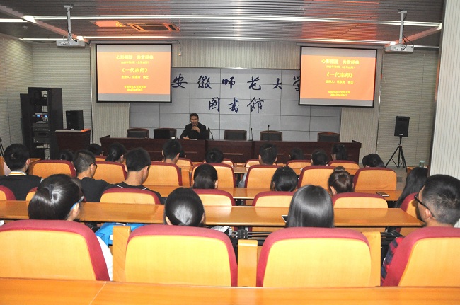 10月9日晚,“心影相随 共赏经典”2016年第七期(总第12期)在敬文图书馆一楼视听阅览室举行。活动由体育学院副教授花家涛博士主持,播放影片为爱国教育专题片《一代宗师》。