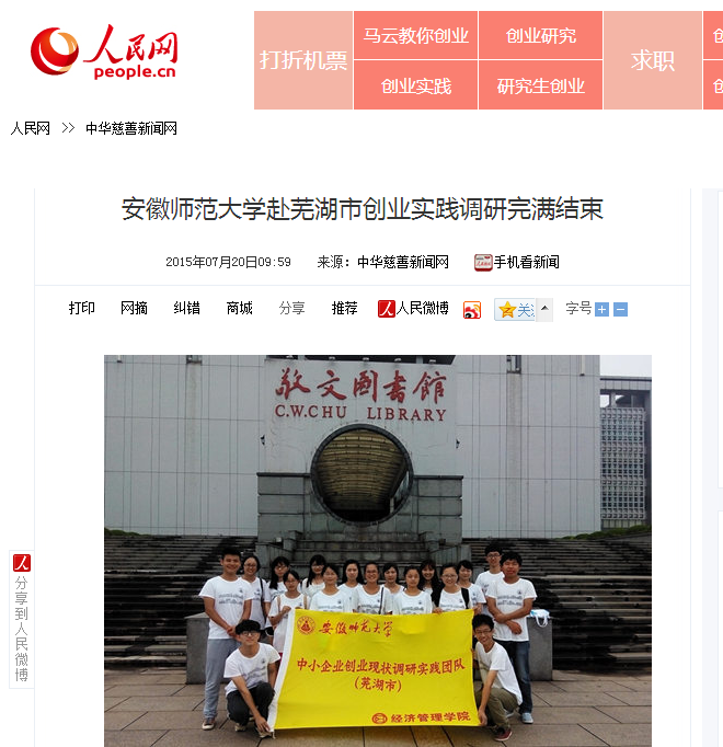 【人民网】安徽师范大学赴芜湖市创业实践调研完满结束