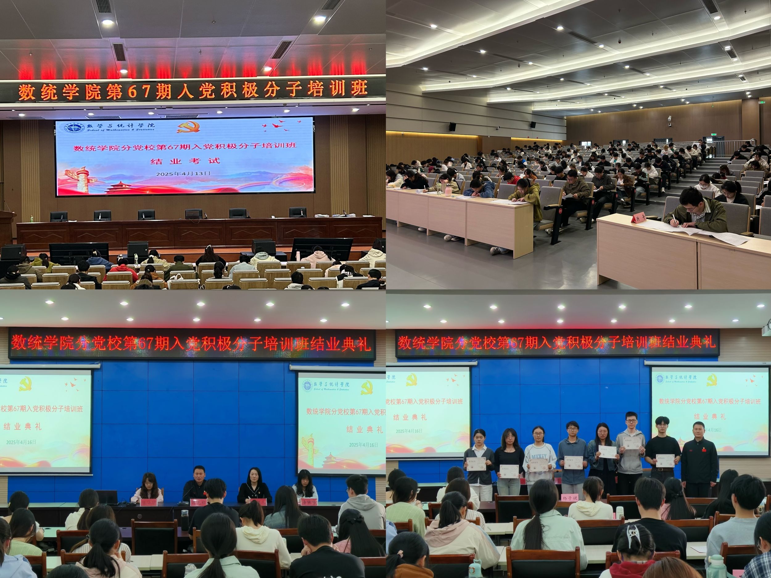 数统学院分党校一贯重视入党积极分子的培养和教育工作,确保党员发展质量。第67期入党积极分子培训班自开班以来,坚持以党的二十大和党的二十届三中全会精神为主线,结合中央八项规定精神和学校三大行动计划开展教育活动,着重提升学员的理论深度和实践维度,引导入党积极分子进一步端正入党动机,加强党性修养,用实际行动践行“请党放心,强国有我”的青春誓言,争取早日加入党组织。