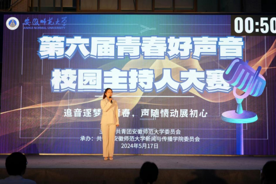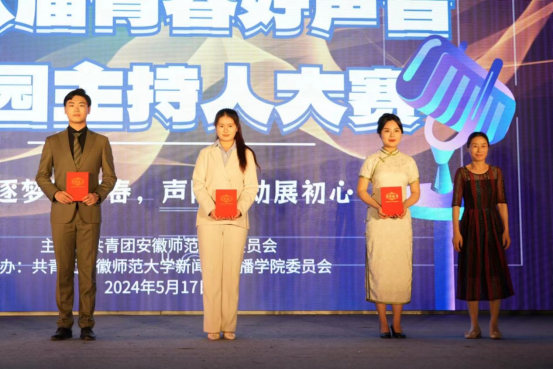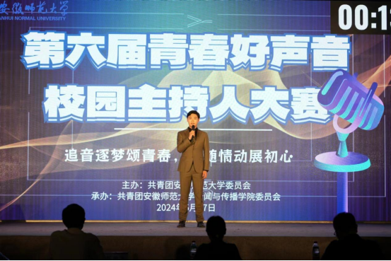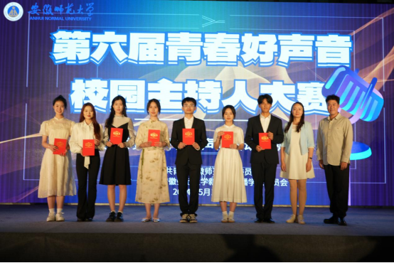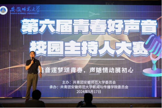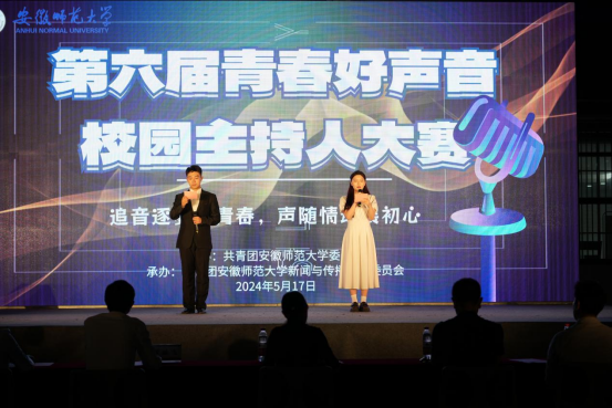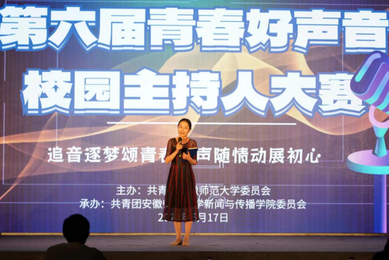 追音逐梦颂青春,声随情动展初心。5月17日晚七点,由共青团安徽师范大学委员会(大学生艺术教育中心)主办,共青团安徽师范大学新闻与传播学院委员会承办的第六届“青春好声音”校园主持人大赛决赛在大学生活动中心一楼舞台顺利举行。安徽师范大学文学院副教授、硕士生导师、国家级普通话水平测试员、校普通话教研室主任汪红艳,芜湖传媒中心记者恽鹏飞,安徽师范大学播音与主持专业老师、中央电视台挑战主持人冠军、江西新闻奖获得者孙炜峰,校党委宣传部网宣办主任田超,安徽师范大学体育学院副教授、硕士生导师、安徽省省级教坛新秀、校团委艺术指导部部长王云辰担任此次大赛评委。
