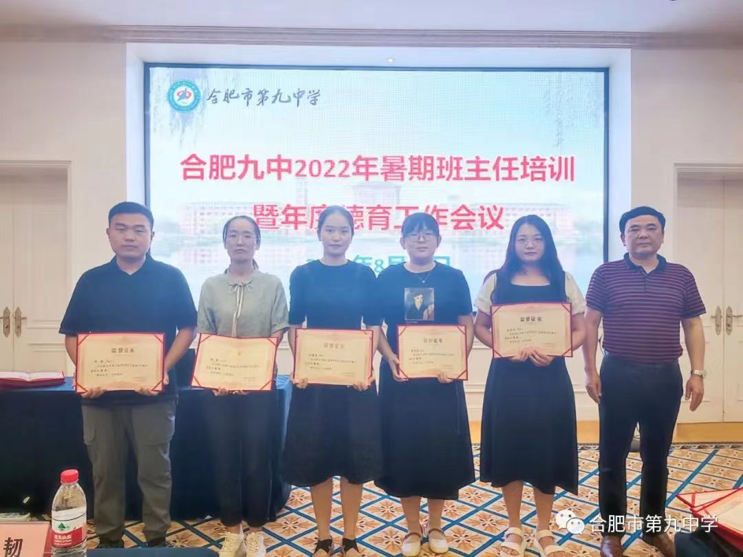 甘嘉蓓荣获合肥九中2021—2022学年优秀班主任(左起第三位)