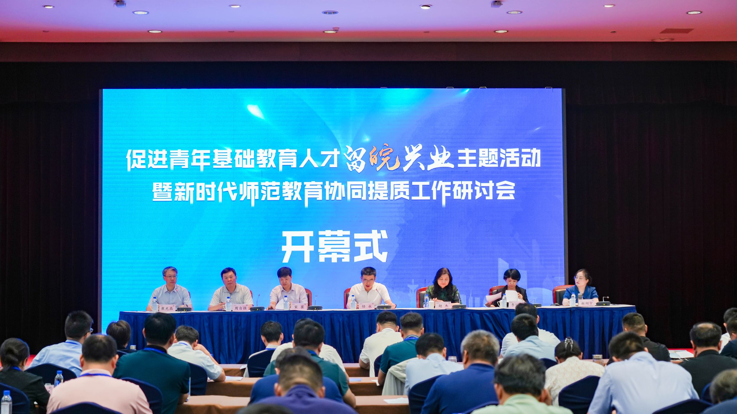 8月1日-2日,新时代师范教育协同提质工作研讨会在我校举行。校党委常委、副校长任永,安徽省教育科学研究院、北京师范大学教务部培养处负责同志出席研讨会。西北师范大学、青海师范大学、阜阳师范大学、西昌民族幼儿师范高等专科学校等教育部师范教育协同提质计划高校有关负责同志,淮北师范大学、安庆师范大学、合肥师范学院、淮南师范学院等省内师范类高校教务部门负责同志,各地市教育局、团市委负责人,部分全国全省青联委员、中学校长等近200名教育界、青年界、学术界的教授专家齐聚我校,共同为师范教育协同提质行动助力新时代基础教育发展建言献策。