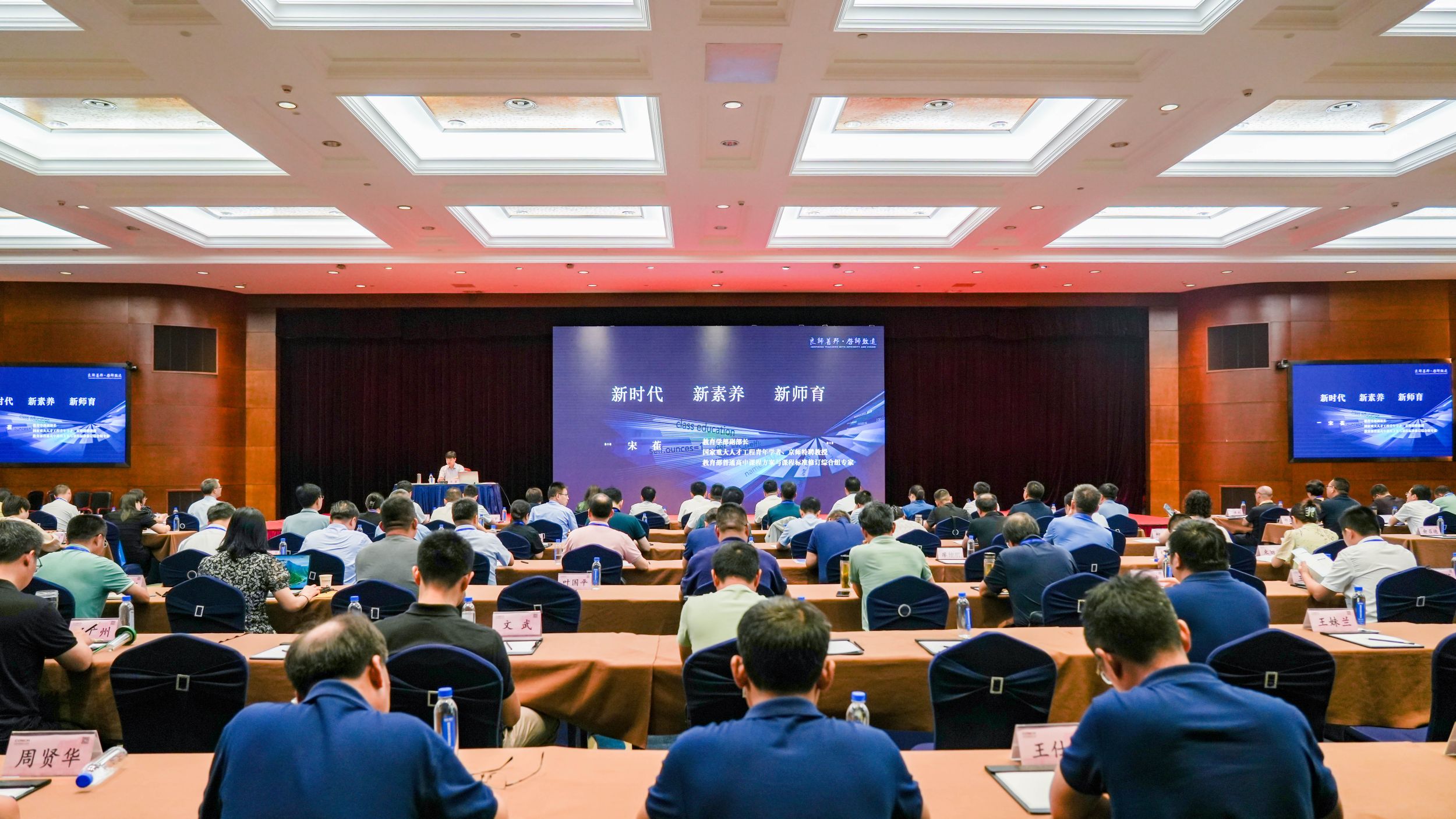 北京师范大学教育学部副部长、教师教育研究所所长、京师特聘教授宋萑作了题为《新时代 新素养 新师育》的主旨报告。他指出,新时代学校教育应聚焦于学生核心素养的培养,并以核心素养引领新课标,教材编制也要贯彻素养逻辑。他认为,国家课程校本化实施应遵循“大单元设计”“跨学科教学”“学校特色化发展与校本课程建设相衔接”等原则,服务学生核心素养提升。他强调,要深入思考拔尖创新人才的培养与全面发展教育之间的关系,教师应为未来而教,以核心素养为导向,重视课堂的生成、儿童的在场、师生的互动。