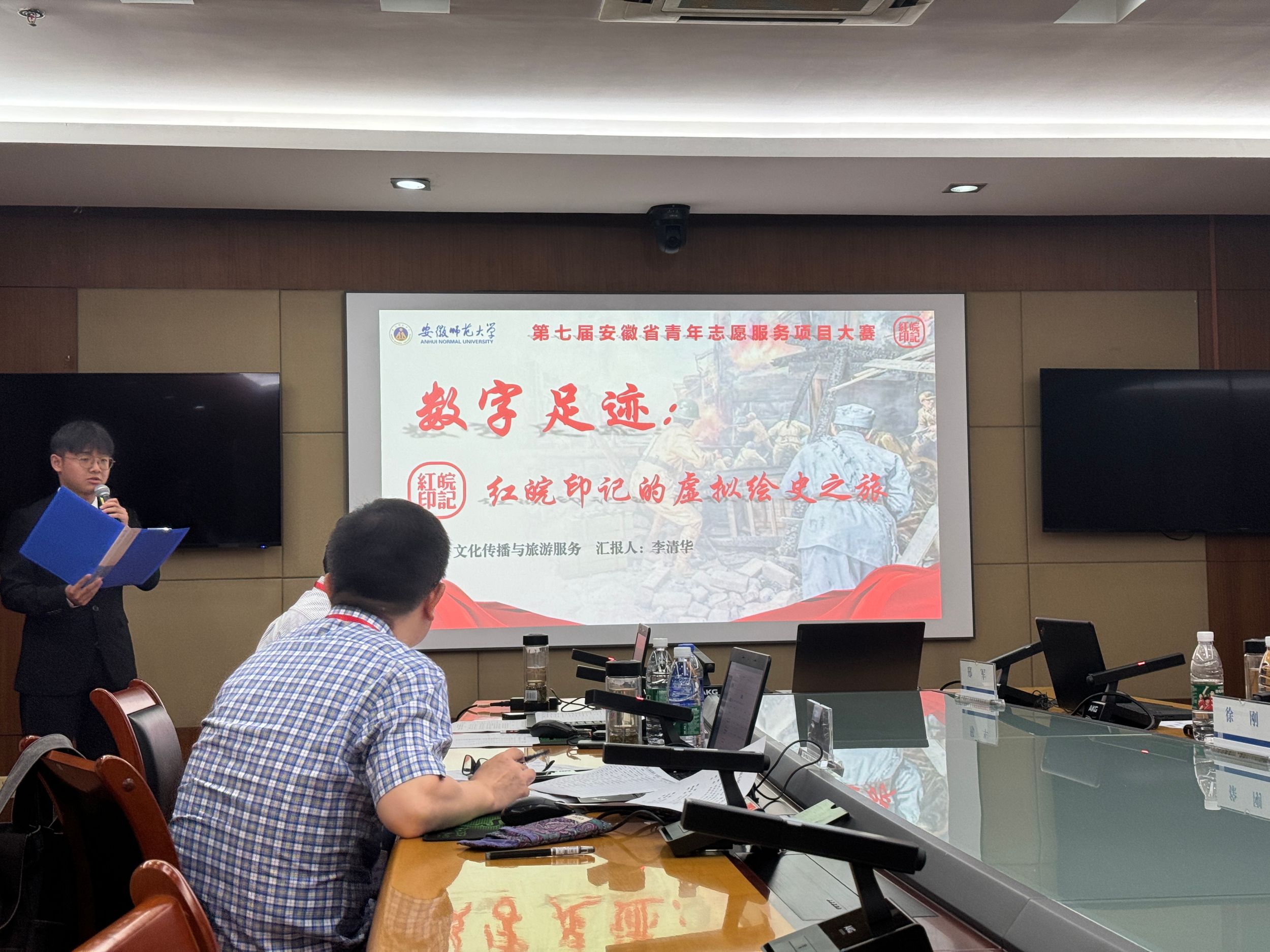 决赛中,各项目团队通过5分钟的路演及2分钟的答辩环节,展示了项目的核心理念、实施目标、运营管理和成果成效等关键内容。经评审,在主赛道中,“防范结核,志愿有我”结核病防治知识宣讲志愿服务项目(经管学院推荐)、“蜜糖π递”关爱唐氏综合征患者爱心志愿活动(数统学院推荐)荣获金奖,“皖江渔水情”长江江豚保护系列行动(生科学院推荐)、“金苹果”科普志愿服务项目(物电学院推荐)、“皖美山河:用青年力量讲好安徽故事”(新传学院推荐)荣获银奖,“‘语’你‘乡’伴”国家通用语言文字推广普及志愿服务活动(文学院推荐)、“墨韵古今 书香城市”芜湖城市书房文化育人志愿服务项目(历史学院推荐)、“夕阳e路”让指尖科技点亮老年人智慧生活(计信学院推荐)、用“青言青语”讲好党的创新理论(马院推荐)荣获铜奖。在公益创业赛中,“数字足迹——红皖印记的虚拟绘史之旅”(计信学院推荐)荣获金奖,水乡忆梦——用“全季+”模式打造城郊水乡慢旅行(经管学院推荐)、“绘画鹿——传承非遗文化的志愿先锋”(美术学院推荐)荣获铜奖。