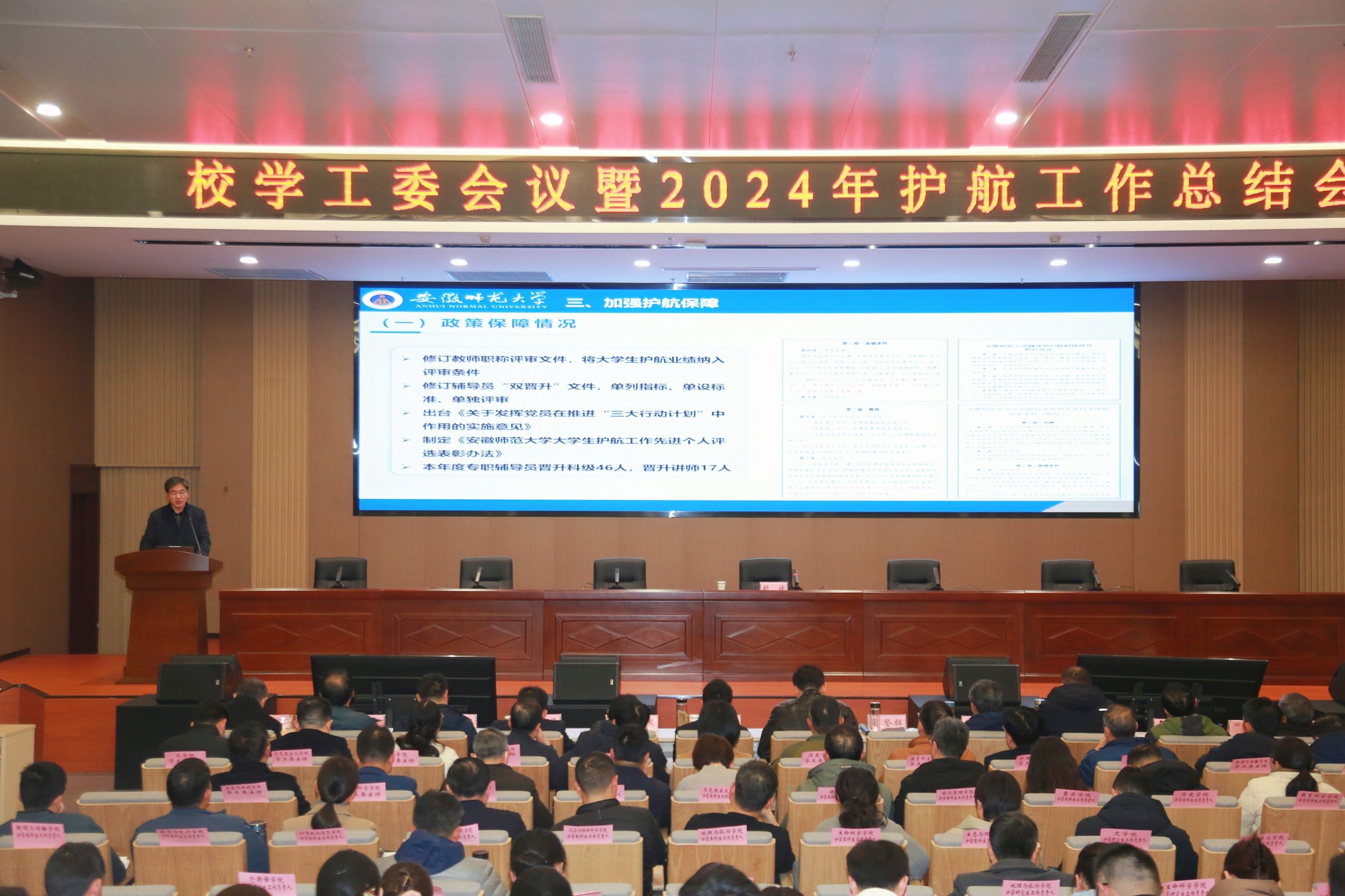 为全面总结2024年大学生护航行动计划工作,进一步推深做实大学生护航行动计划,推动新时代高校学生工作创新发展,3月6日下午,学校在花津校区文典楼西裙楼报告厅召开校学工委会议暨2024年护航工作总结会,全面总结交流2024年大学生护航行动计划工作,研究布置2025年护航工作。会议由校学工委副主任、校党委副书记胡靖主持。校学工委全体委员参加会议,各学院分管本科生和研究生工作负责人,全体本科生、研究生专兼职辅导员列席会议。