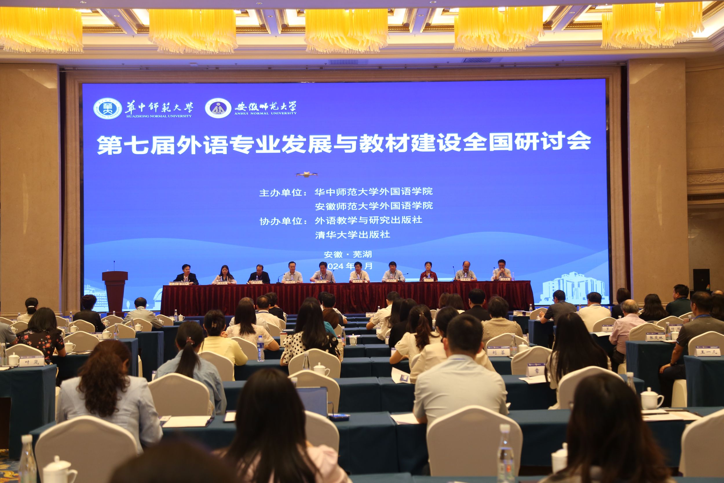 6月1日,由华中师范大学外国语学院、安徽师范大学外国语学院联合主办,外语教学与研究出版社、清华大学出版社协办的第七届外语专业发展与教材建设全国研讨会在我校召开。来自全国有关高校的近100名专家、学者和骨干教师参加了本次研讨会。大会开幕式由安徽师范大学外国语学院党委书记谢超峰主持。