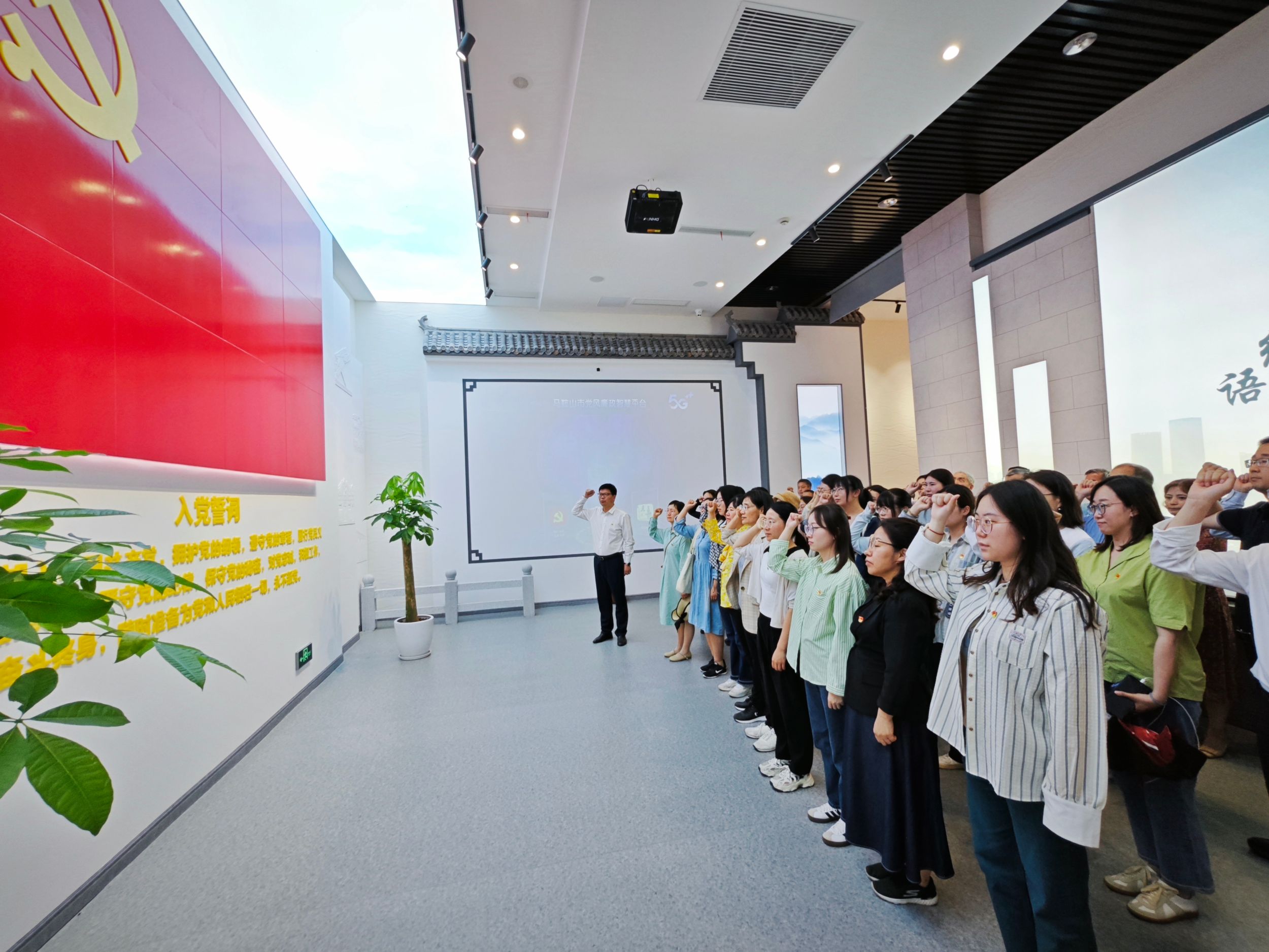 到达马鞍山市后,师生一行首先来到了薛家洼生态园。在教学现场,师生们沿着习近平总书记的足迹,通过听取讲解、观看展板、实地感受等方式,感受到了长江岸线的美丽蜕变,体会到了习近平生态文明思想的科学内涵和实践伟力。在中共马鞍山市雨山区委党校,大家共同聆听了马鞍山市委党校王春祥副教授关于新修订的《中国共产党纪律处分条例》的专题报告,他从“党纪学习教育”的背景和任务、《中国共产党纪律处分条例》的主要内容和落实条例的着力点三个方面做了详实的报告。本次实践教育的最后一站是马鞍山市廉政教育中心。展览中,一个个典型案例的剖析、一幅幅直击灵魂的画面,彰显了中国共产党从严治党、反腐倡廉的决心。实践教育结束后,全体人员面向鲜红的党旗,重温入党誓词,向党作出郑重而响亮的承诺。