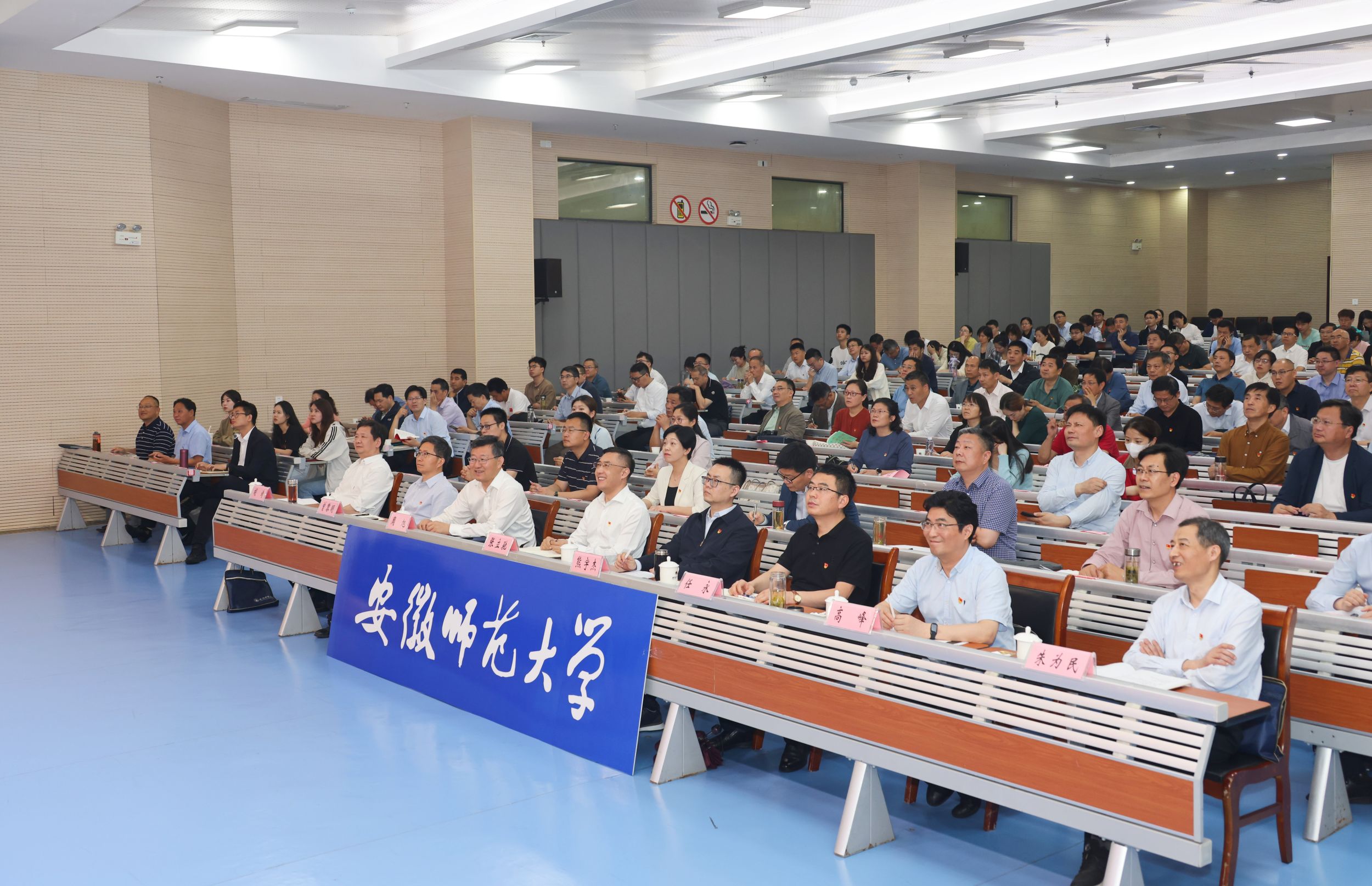 会议分为专题报告、理论学习和专题研讨三个阶段。专题报告阶段,学校领导班子成员与全体中层领导人员、师生党员代表等集体收看了省委教育工委举办的“举旗帜•送理论”党纪学习教育专题宣讲辅导报告会。省纪委监委驻省委宣传部纪检监察组一级巡视员宰学明重点围绕《中国共产党纪律处分条例》,从党纪学习教育的重大意义、《条例》内容解读和如何贯彻落实党纪学习教育要求等三个方面进行了系统讲解。