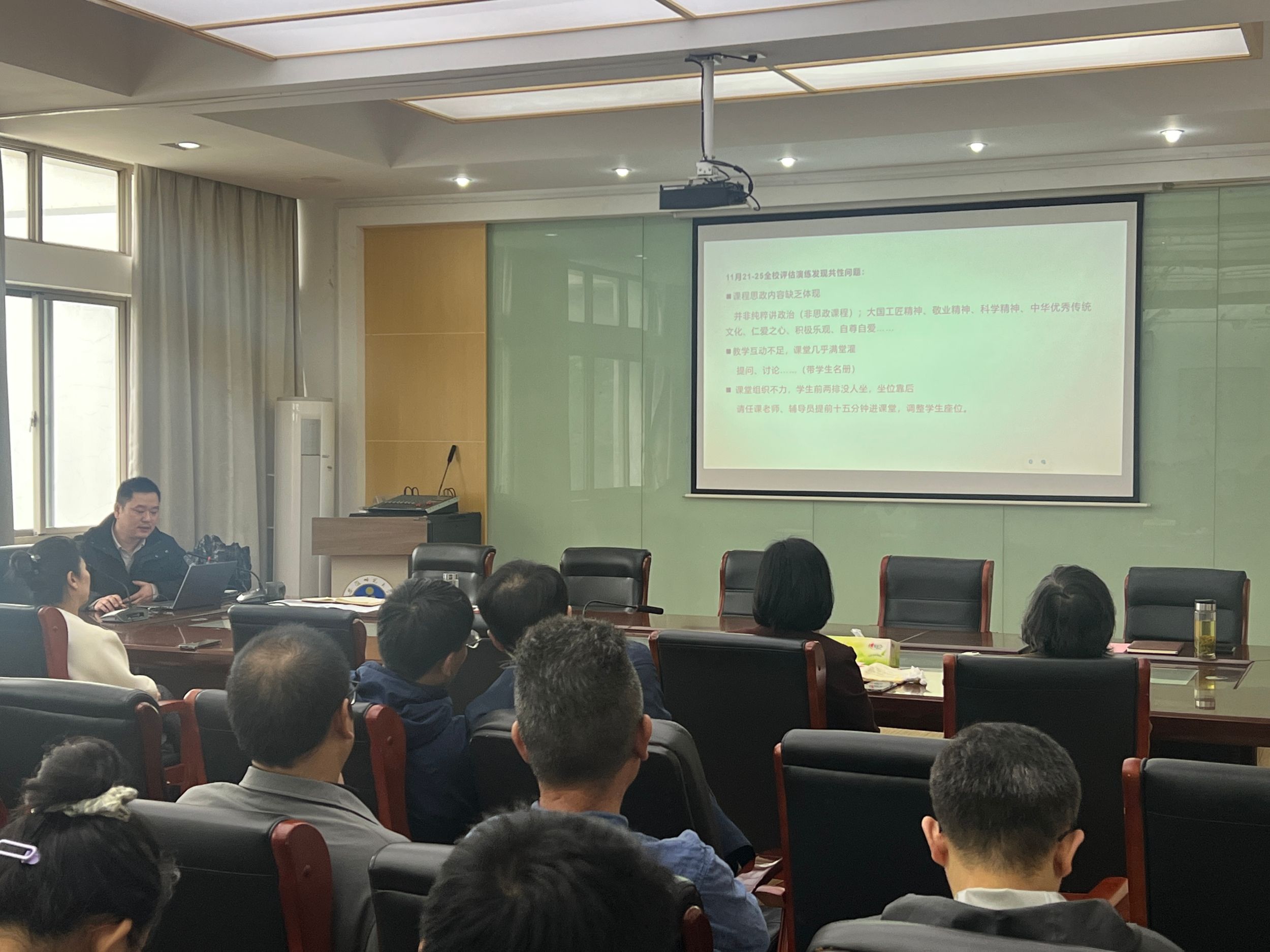 副院长王春雷结合本科教育教学审核性评估工作进行专项培训,对本科教育教学评估的各项指标、评估应知应会手册、学院自查过程中发现的问题以及具体工作时间流程等,进行了细致讲解,强调了纪律,明确了教职工在评估工作中的职责与任务。副院长王屹对学院申报国家社科基金项目和国家艺术基金项目进行了全面梳理总结,对项目申报注意事项、研究生导师外出考察以及对外合作办学事宜进行了布置安排。副院长刘曼玉通报了近期学院后勤保障工作情况,并着重就需要全员关注和配合的管理问题和安全问题进行了提醒,旨在为全院师生营造一个更加舒适、便捷的学习与工作环境。