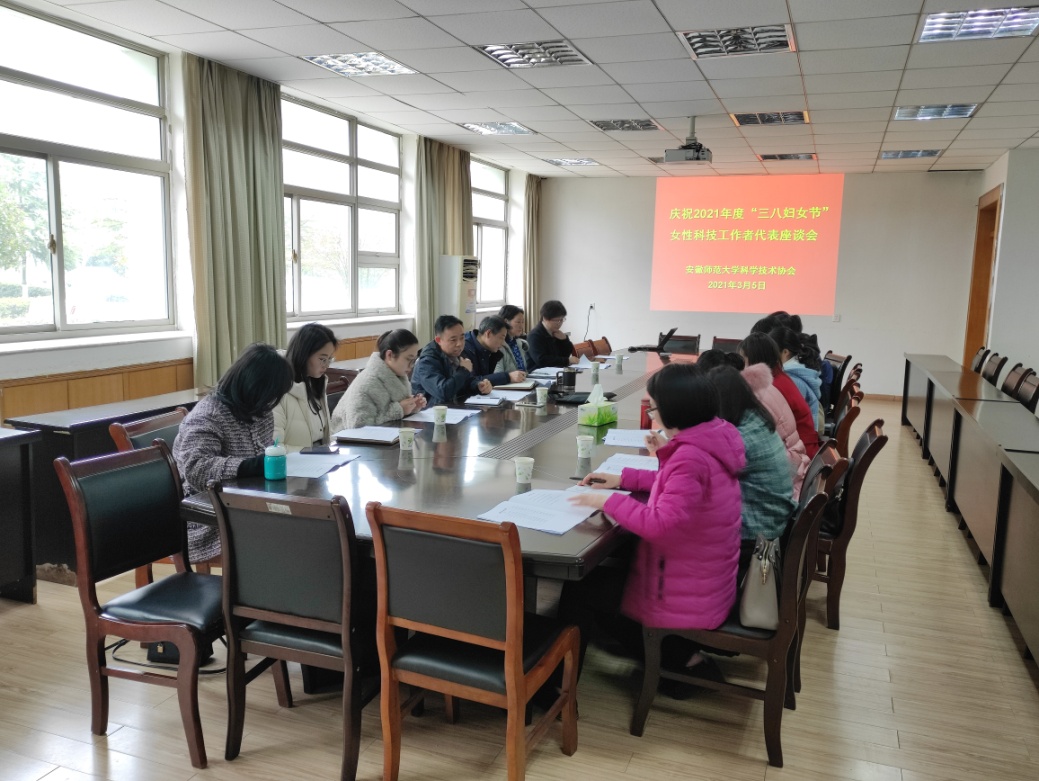 本网讯(校科协)2021年3月5日上午,校科学技术协会在花津校区行政楼第二会议室组织召开庆“三八”国际妇女节——女性科技工作者代表座谈会。人事处处长朱为民、教育工会主席余大芹、校理工科专业女性科技工作者代表参加座谈会。会议由校科协常务副主席耿保友主持。
