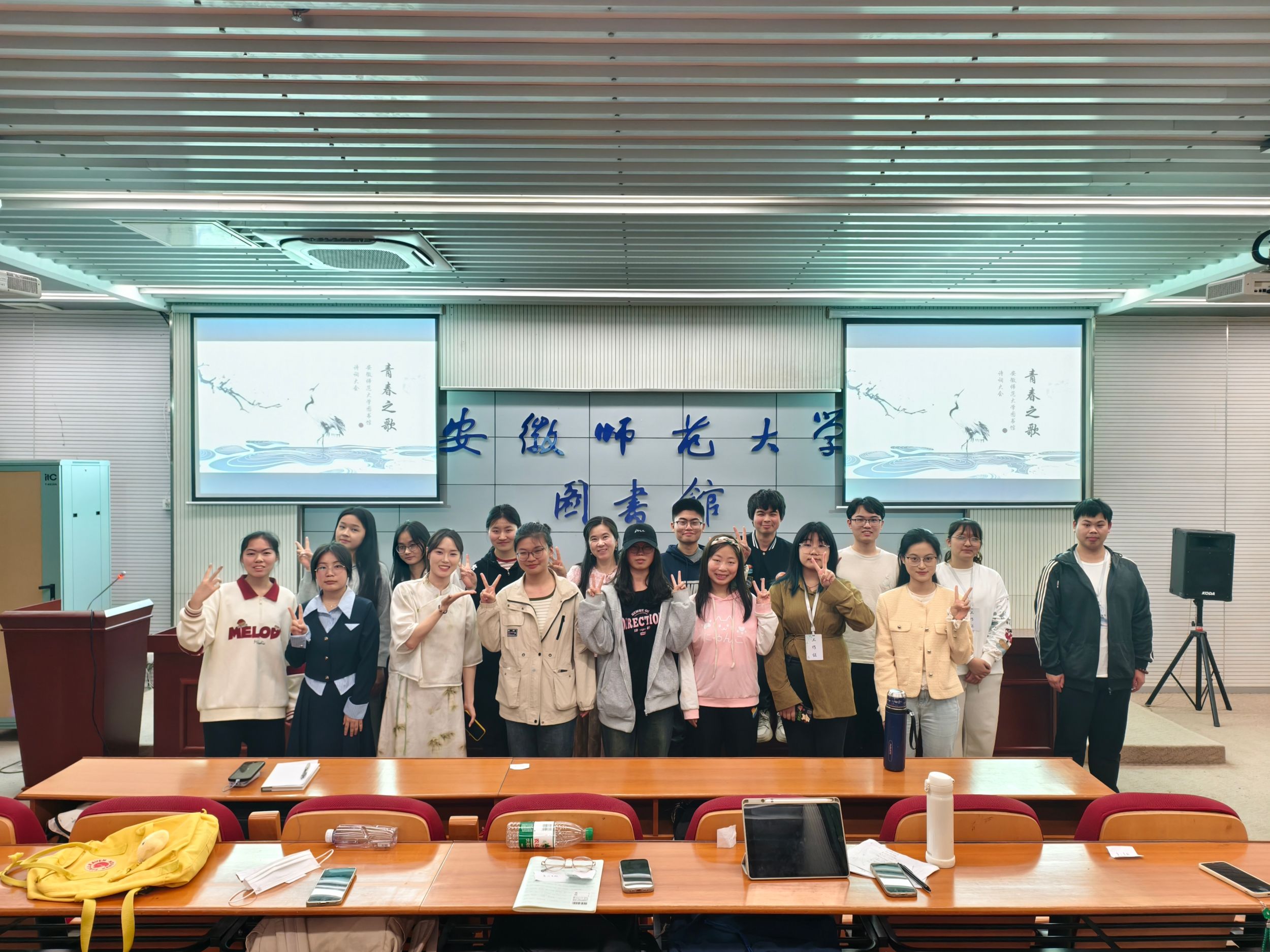 本网讯(文/秦宸 胡宏昇 图/秦宸)人生有诗意,春光逐雅韵。3月26日晚,安徽师范大学图书馆“青春之歌·诗词大会”在敬文图书馆一楼视听阅览室顺利举办。本次比赛由校图书馆主办、读者协会协办,吸引了来自各学院的诗词爱好者积极参与。