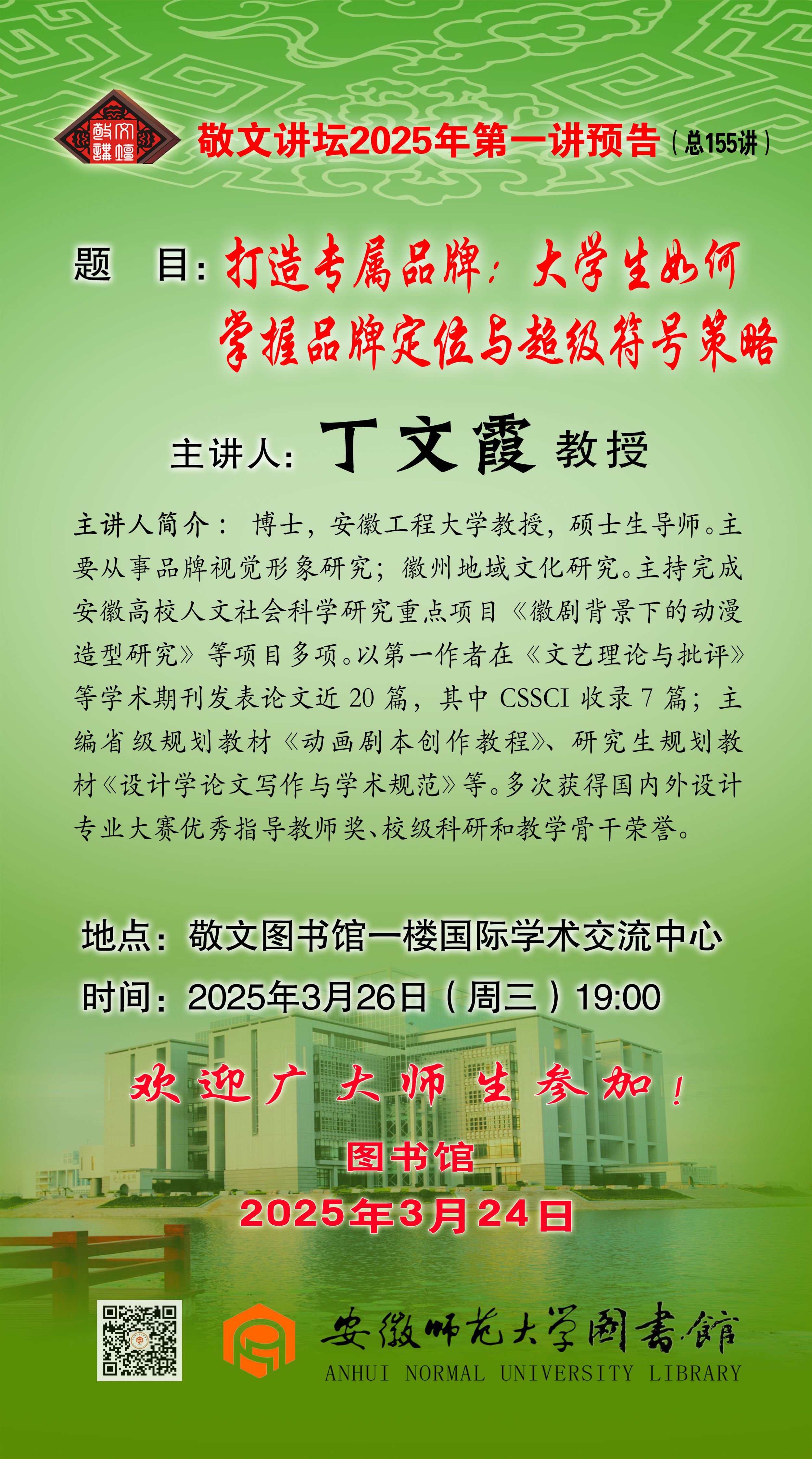 敬文讲坛2025年第一讲(总第155讲)预告:打造专属品牌:大学生如何掌握品牌定位与超级符号策略