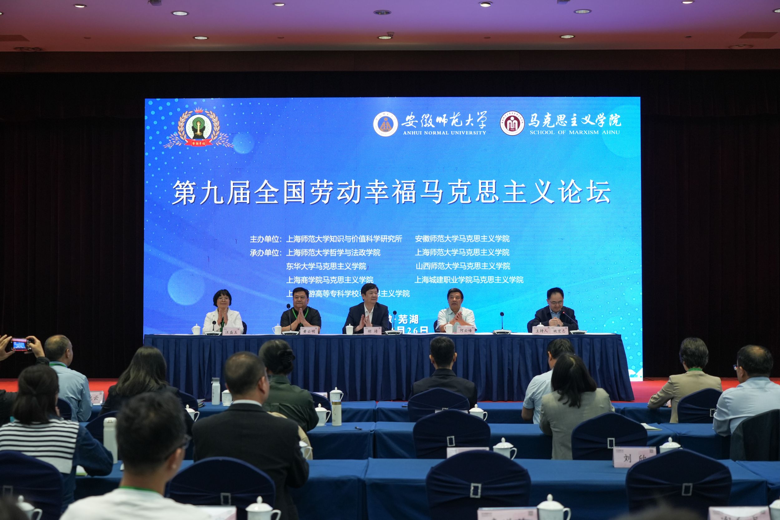 4月26日,由上海师范大学知识与价值科学研究所、安徽师范大学马克思主义学院主办的,由上海师范大学哲学与法政学院、上海师范大学马克思主义学院、东华大学马克思主义学院、山西师范大学马克思主义学院、上海商学院马克思主义学院、上海城建职业学院马克思主义学院、上海旅游高等专科学校马克思主义学院承办的“劳动幸福·美好生活·中国式现代化”第九届全国劳动幸福马克思主义论坛在我校召开。