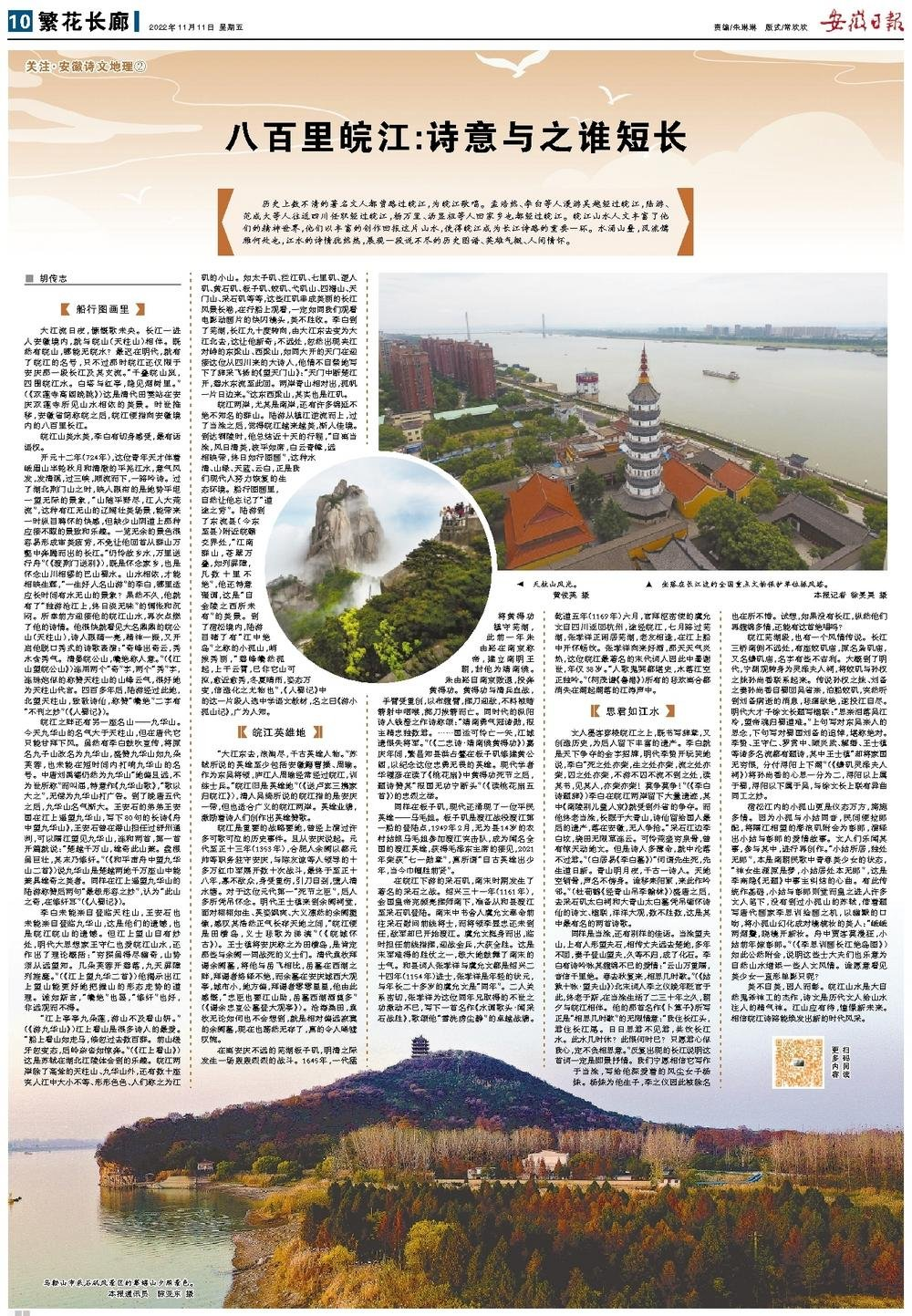 美不自美,因人而彰。皖江山水是大自然鬼斧神工的杰作,诗文是历代文人给山水注入的精气神。江山应有待,憧憬新未来。相信皖江诗路能焕发出新的时代风采。