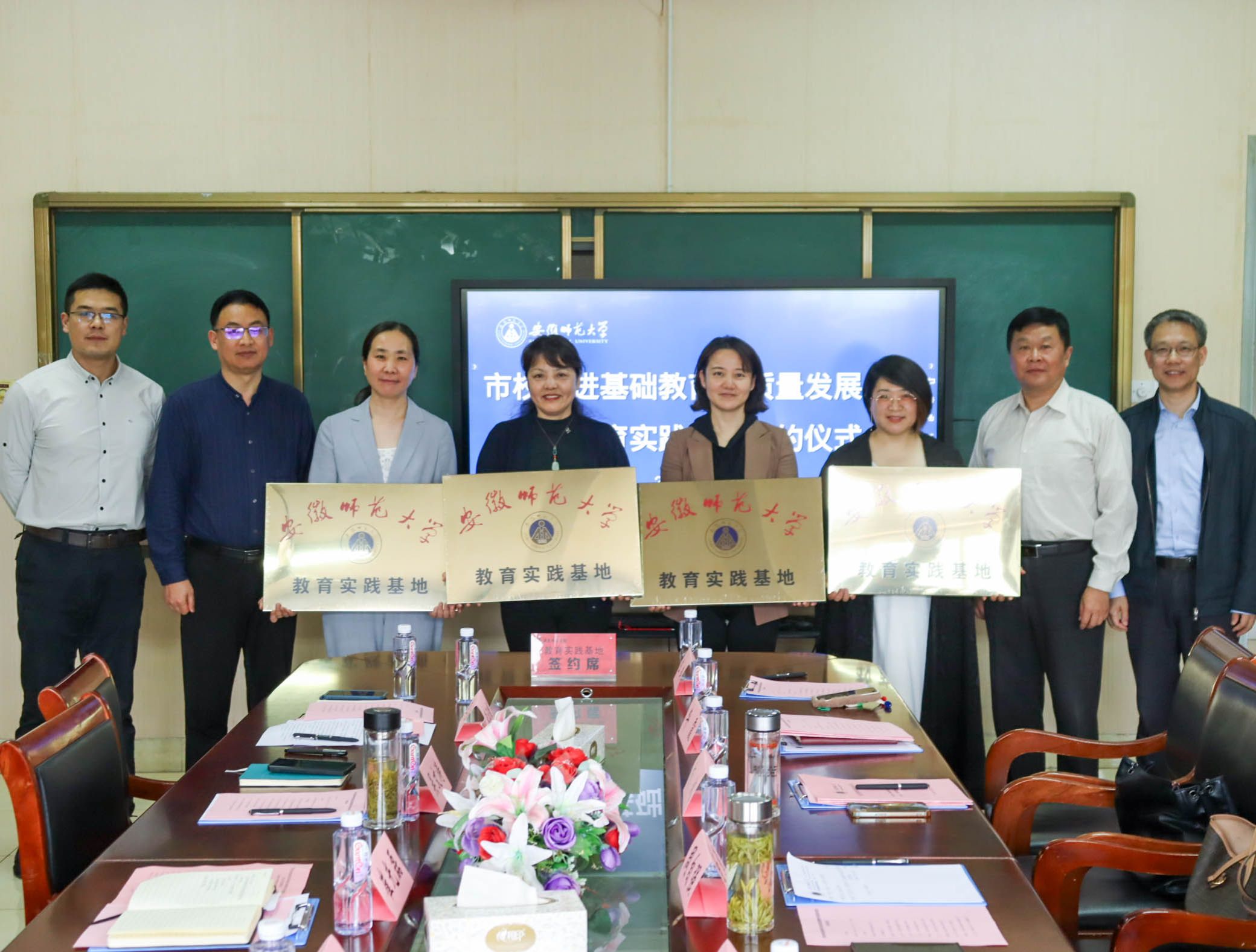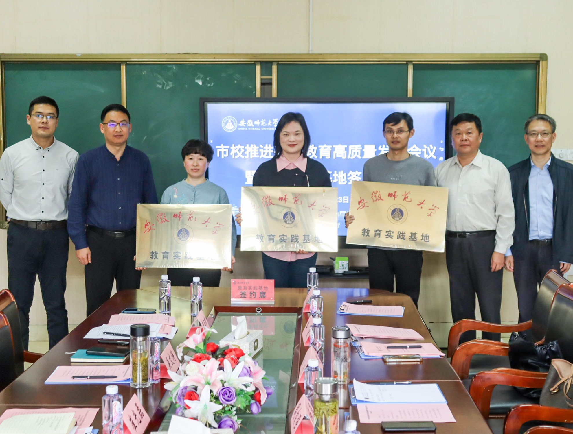 为贯彻落实基础教育振兴和大学生护航行动计划,促进人才培养工作,进一步提高育人质量,4月23日,学校与芜湖市举行基础教育高质量发展会议暨教育实践基地签约仪式在教育科学学院408会议室举行。芜湖市教育局二级调研员周自强、安徽师范大学教务处处长崔光磊、教师教育学院院长宋波、教育科学学院院长吴文涛、教务处副处长李汪根、教育科学学院副院长韩建涛,以及芜湖市特殊教育学校、芜湖市镜湖幼儿园、芜湖市育红小学等7家学校负责人参加本次会议,会议由教务处副处长李汪根主持。